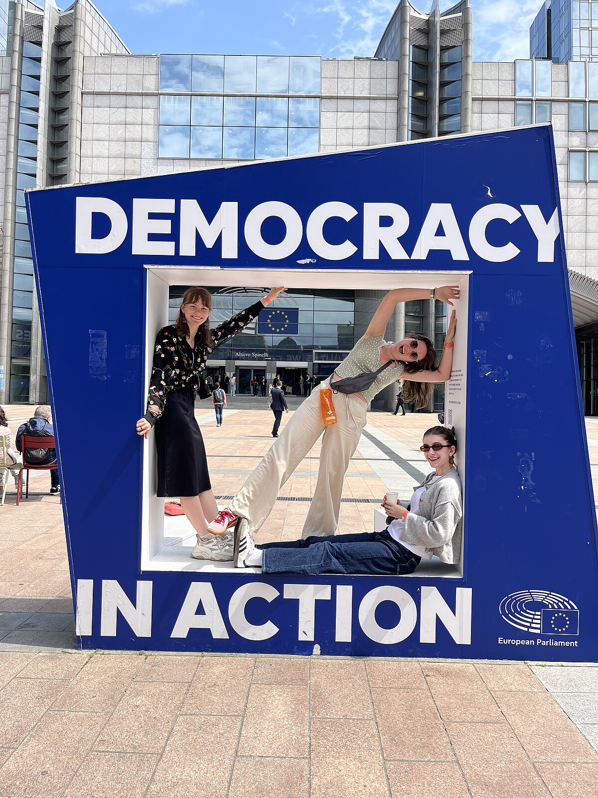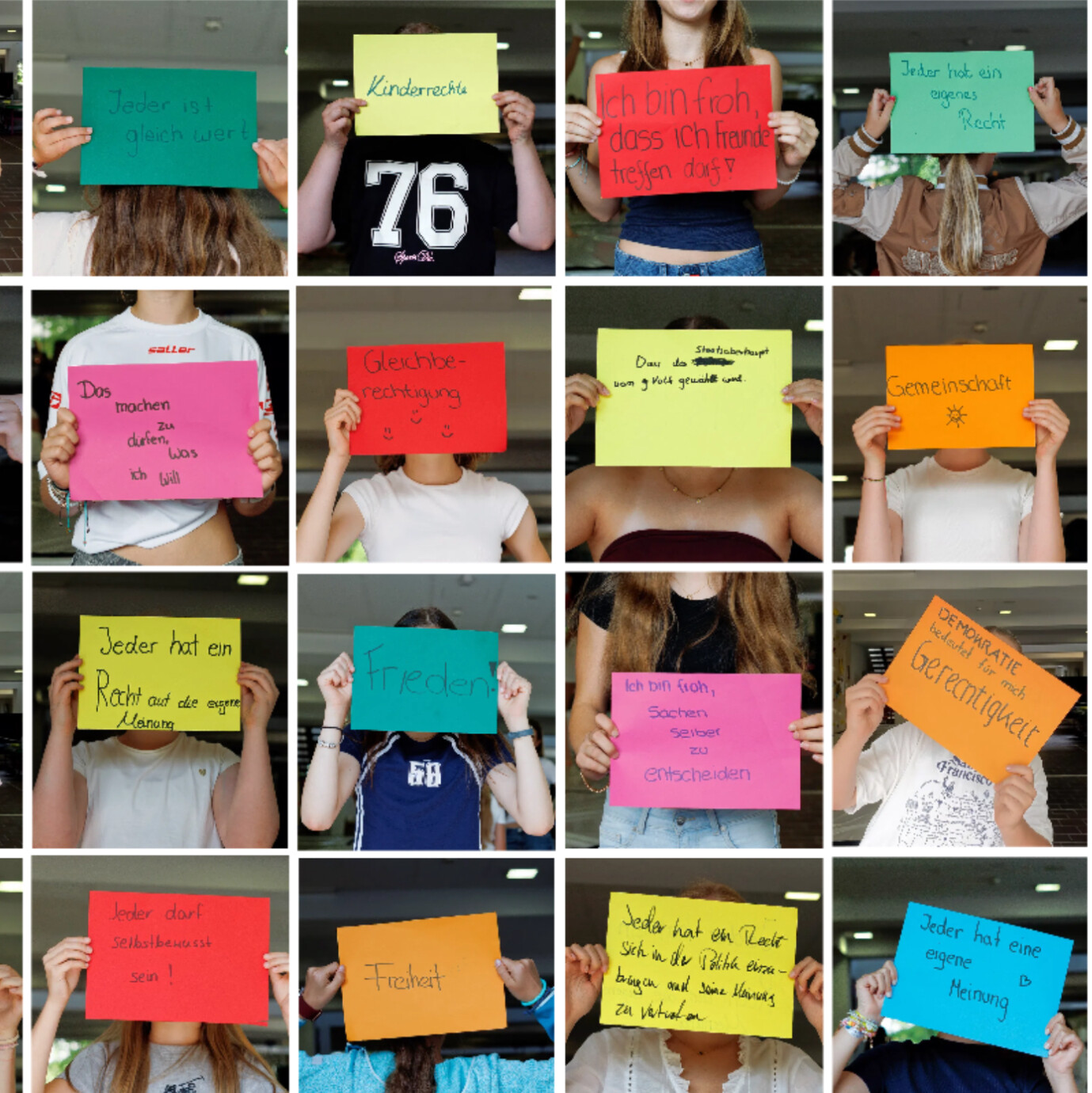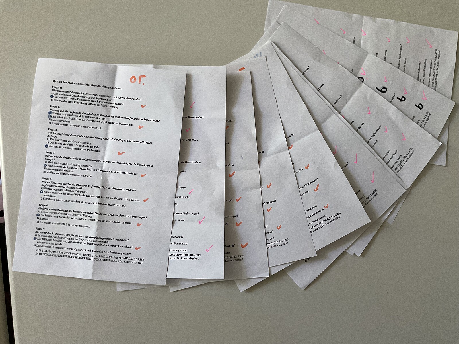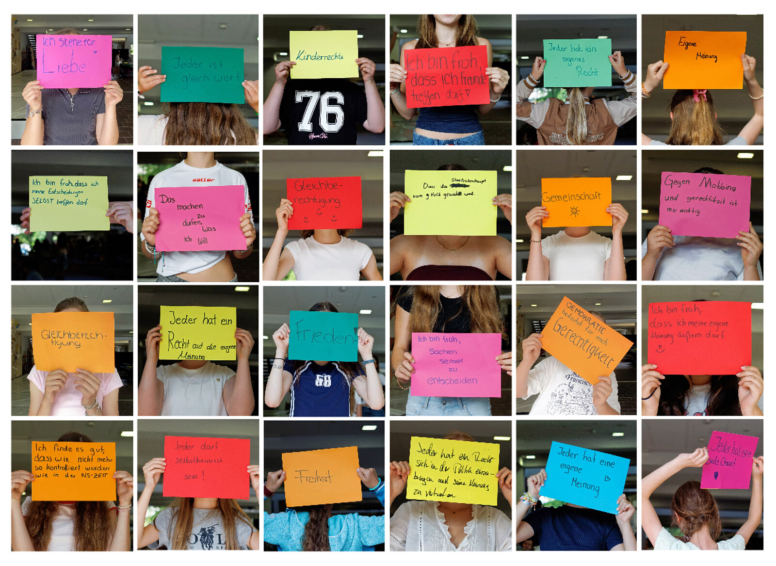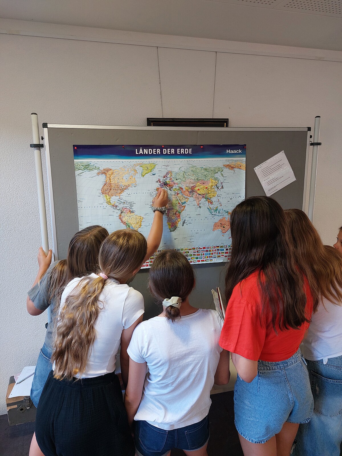 Zudem haben wir die Woche der Demokratie, vom 23.06.-27.06.2025, durchgeführt. Spannende Mitmachaktionen wurden von uns vorbereitet, z. B. eine Brainstorming-Mindmap, ein Rollenspiel, die Meilensteine der Demokratiegeschichte, eine Fotostation mit selbst gemachten Statements zur Demokratie sowie eine Weltkarte, in der unsere gesamte Schulfamilie schätzen konnte, welche Länder auf der Welt demokratisch sind. Außerdem haben wir den Anne-Frank-Tag miteinbezogen und eine Stadtrallye durch die Altstadt mit Besichtigung verschiedener Mahnmäler samt Aufgaben dazu geplant, getreu dem Motto „Jüdisches Leben sichtbar machen“.