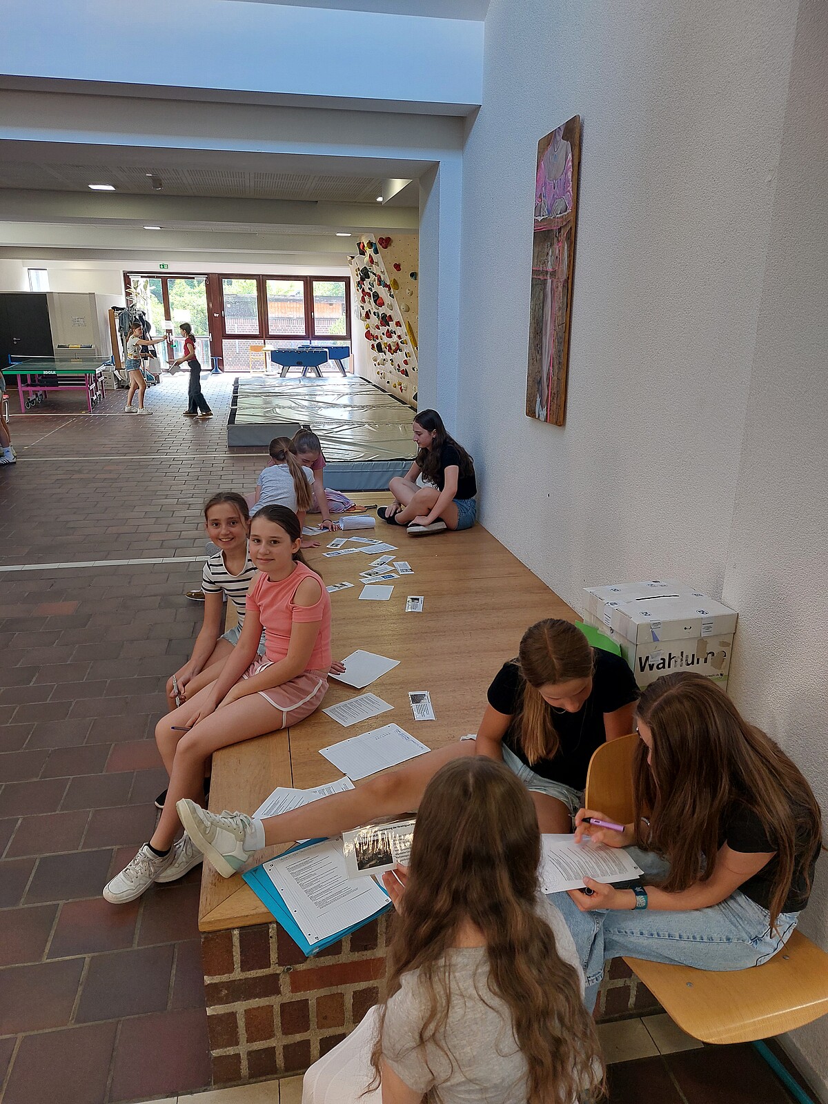 verwendet, in die Pausenhalle zu kommen und die Schülerinnen selbstständig an