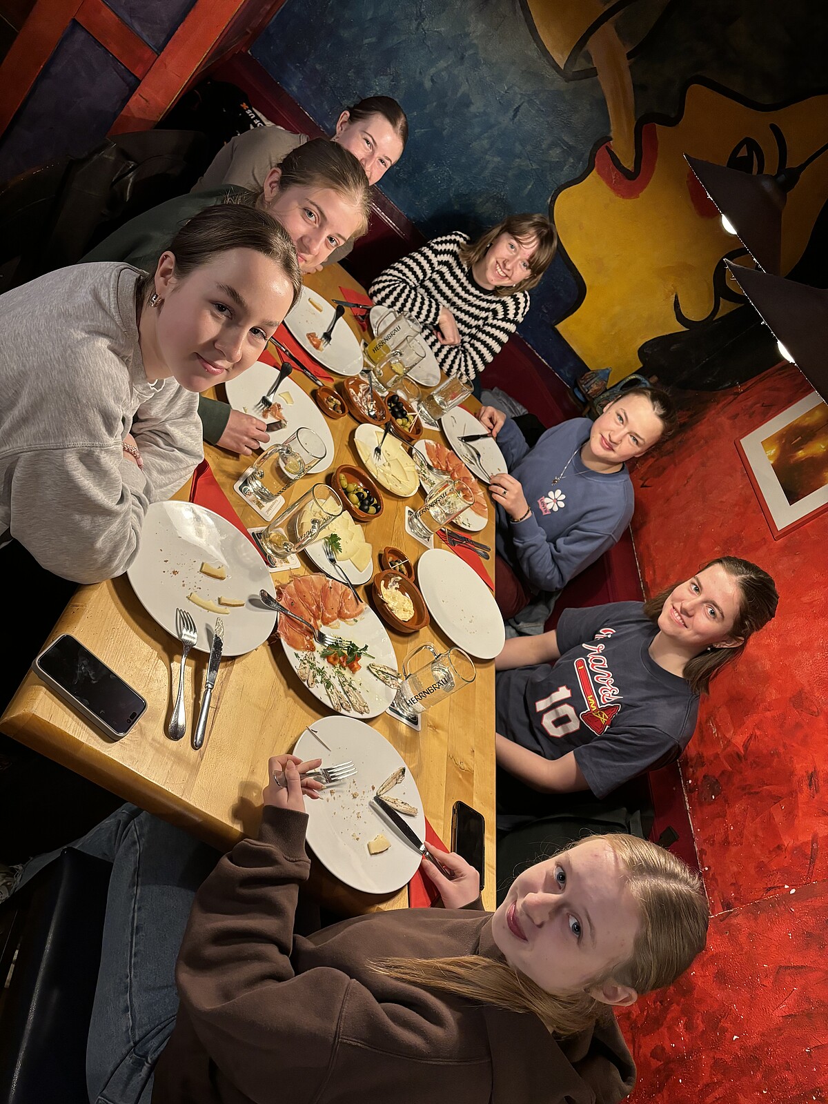 Nachdem die Schülerinnen einen Einblick in die künstlerische Arbeit von Yoseba MP erhalten hatten, war es Zeit für ein kulinarisches Highlight: ein Tapas-Erlebnis. Die Schülerinnen hatten im traditionsreichen Tapas am Ölberg die Auswahl zwischen einer Vielzahl an kleinen köstlichen Gerichten. Zwischen aceitunas, queso manchego und jamón serrano konnten sich die Schülerinnen in entspannter Atmosphäre austauschen und die Eindrücke des Tages reflektieren.