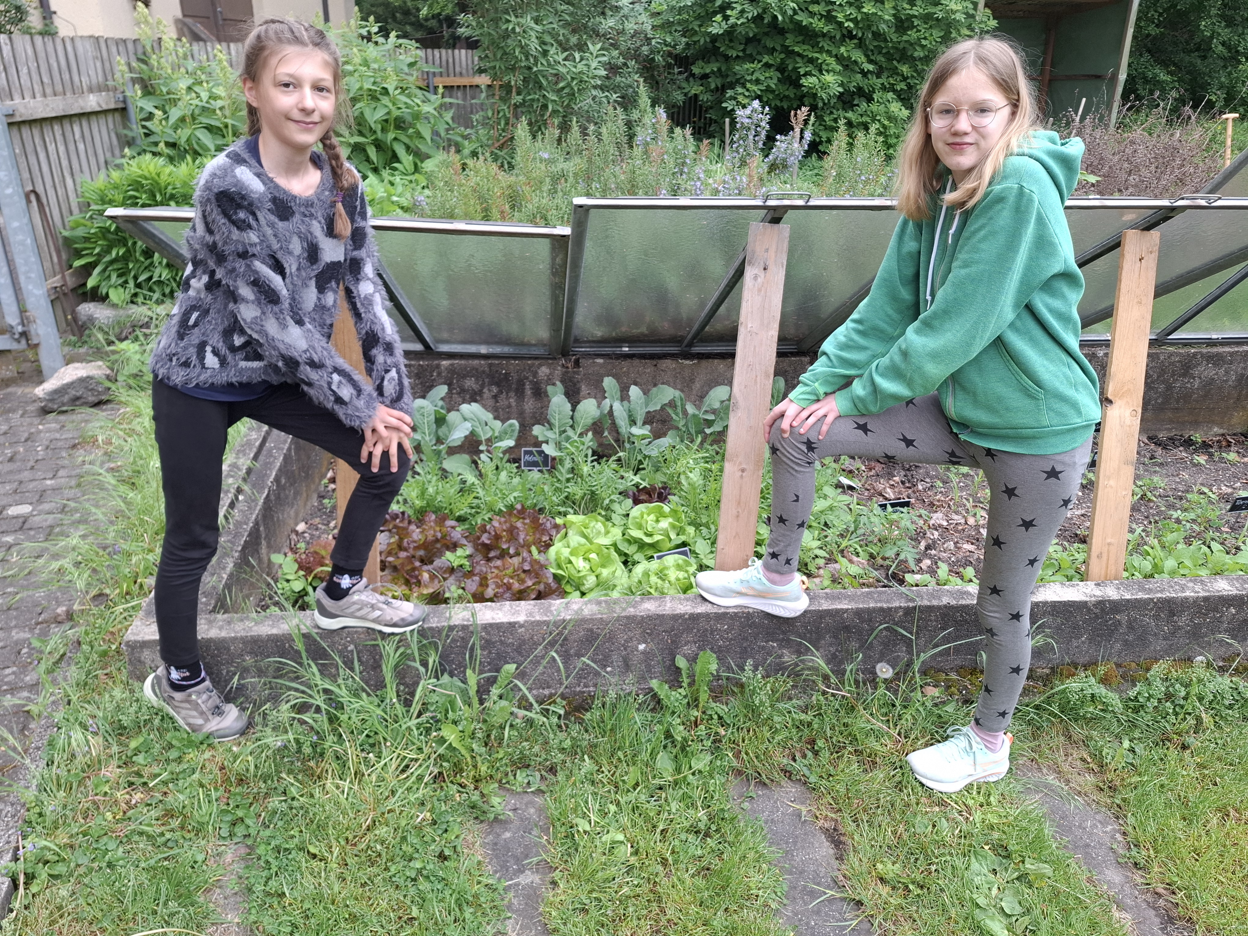Unsere erste Ernte haben wir an den Schulkoch Herrn Ebert weitergegeben. So kommt unsere Arbeit der ganzen Schule zugute.