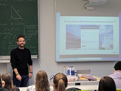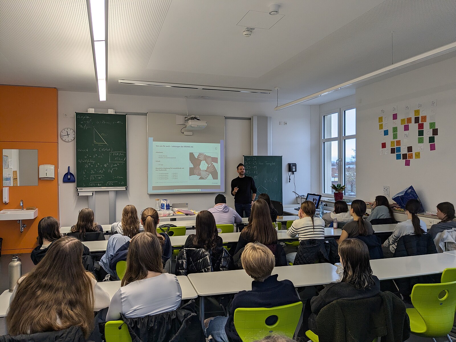 Im zweiten Teil der Unterrichtsstunde durften die Mädchen ihre vorab erarbeiteten Fragen zum Bewerbungsprozess loswerden. Die Chance, aus erster Hand Antworten zu erhalten, nutzen sie sehr motiviert und eifrig. Gestärkt mit neuen Impulsen darf die Zeit der Bewerbungen und Vorstellungsgespräche im Laufe des Schuljahres starten. Wir bedanken uns herzlich bei Herrn Templer und der Krones AG für diesen bereichernden Besuch.