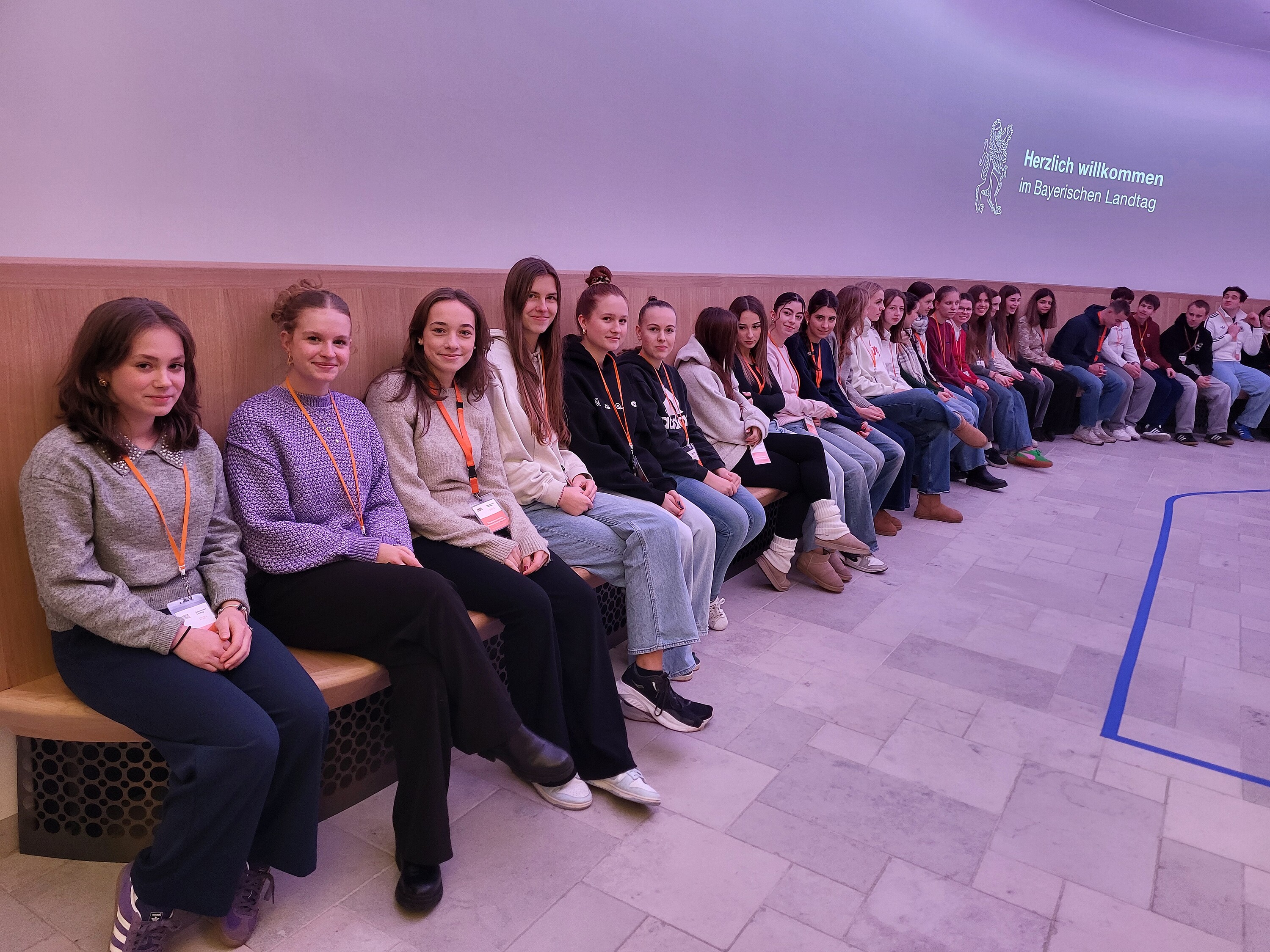 Selina Pinzinger (G 10A) fasst den Tag, der vom Stadtjugendring organisiert wurde, wie folgt zusammen: „Der Ausflug in den Bayerischen Landtag war sehr spannend. Besonders interessant war der Besuch im Plenarsaal, wo wir mehr über die Arbeit der Abgeordneten erfahren konnten. Zudem hatten wir die Möglichkeit, einem Abgeordneten Fragen zu stellen und mehr über seine tägliche Arbeit als Politiker und über den politischen Prozess zu lernen.“