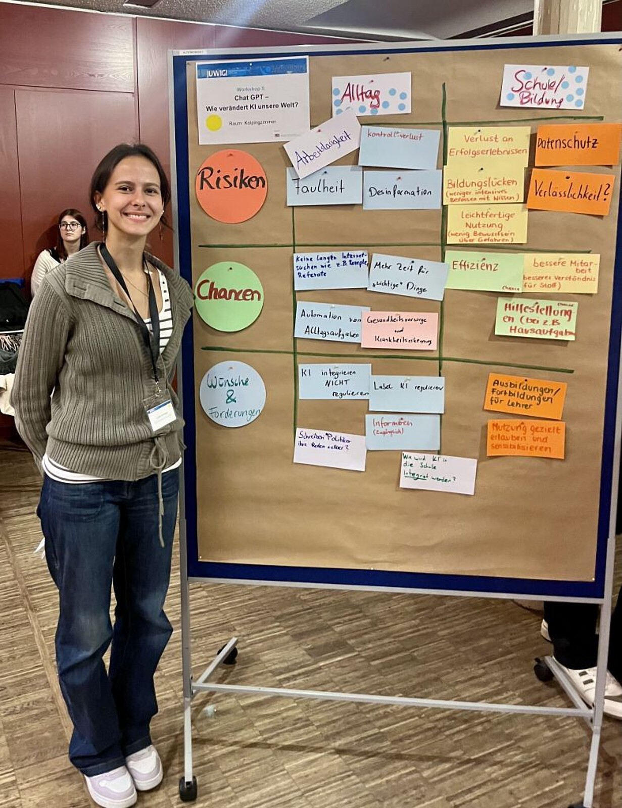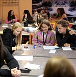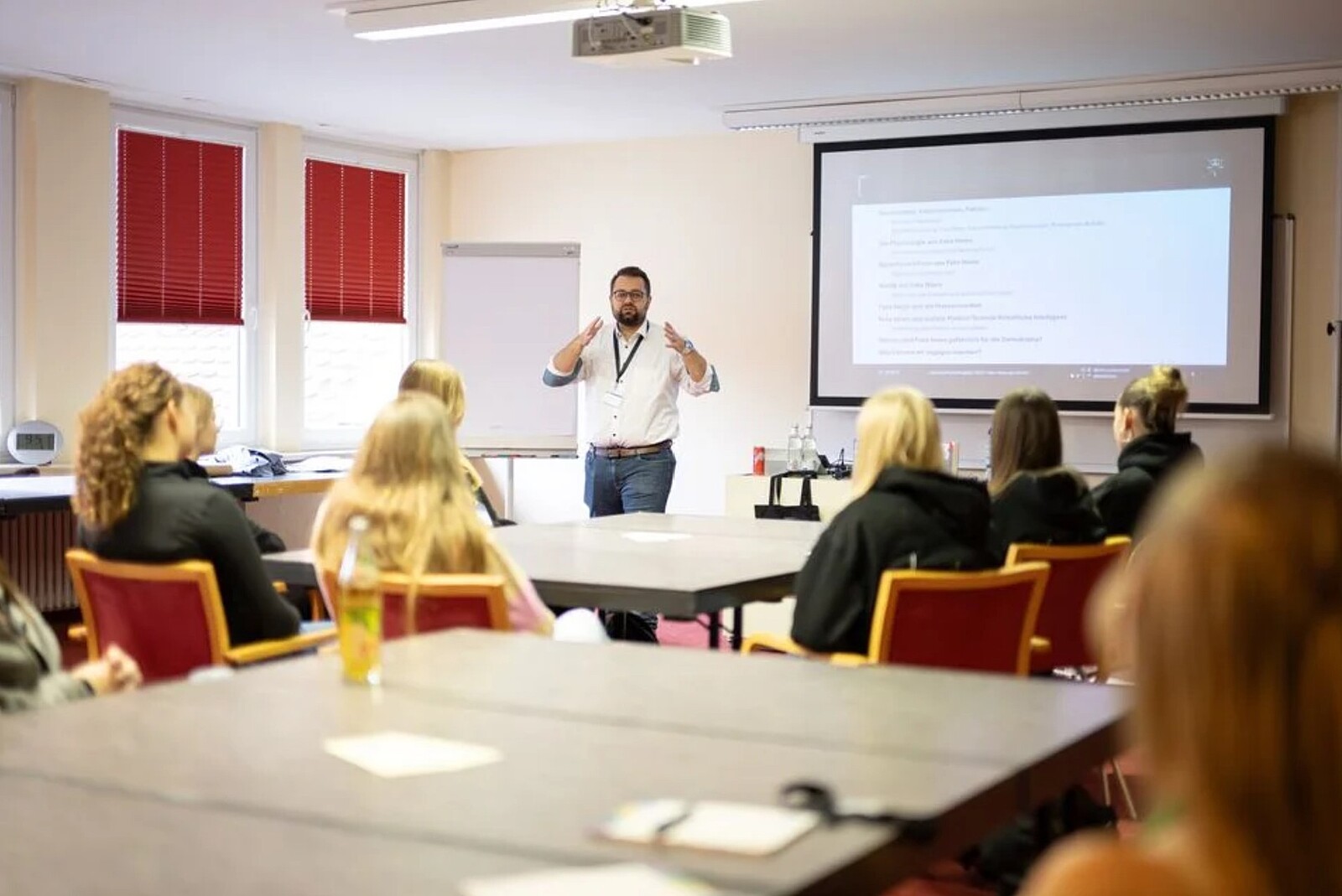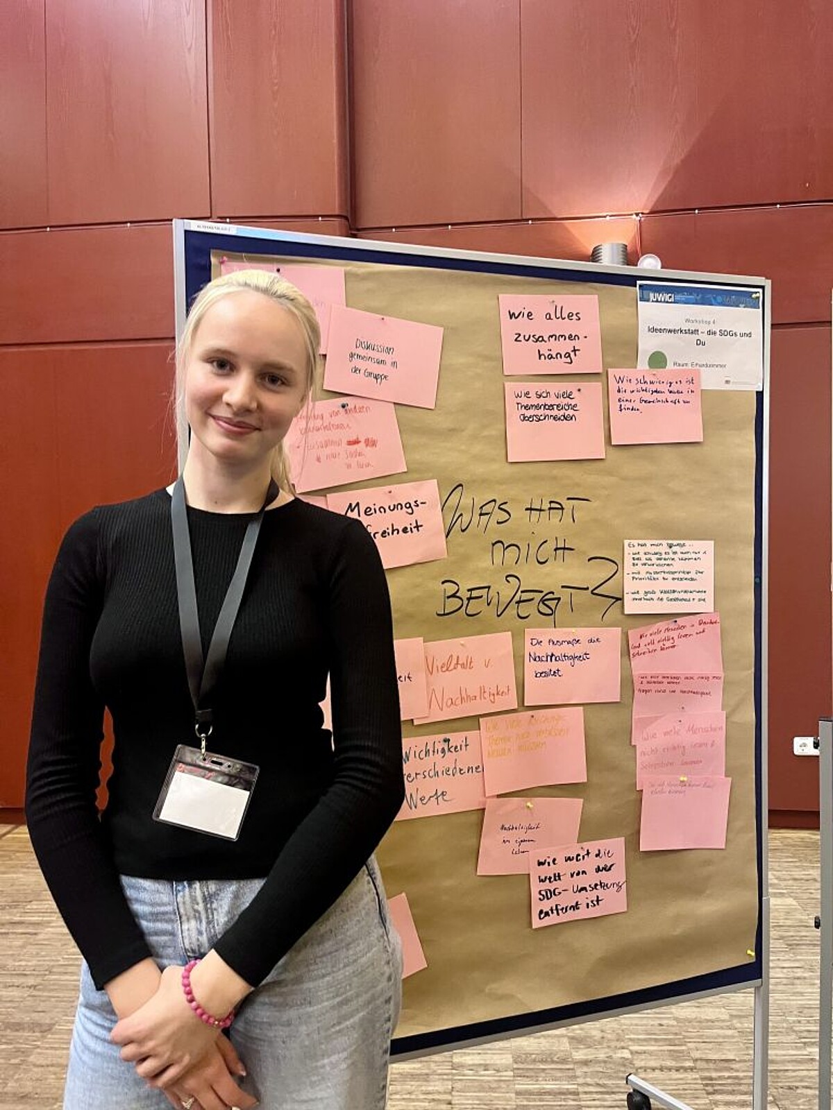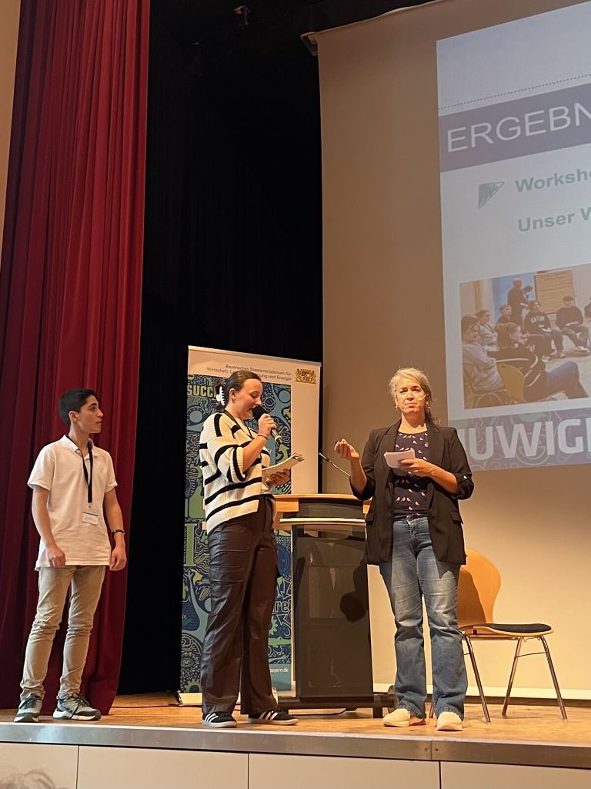 Beeindruckend war das Engagement aller Teilnehmenden, den öffentlichen Diskurs aktiv mitzugestalten – und die Vertreterinnen unserer Schulgemeinschaft waren immer vorne mit dabei. In den Workshops übernahmen einige von ihnen die Verantwortung, die Gruppenergebnisse anschaulich und überzeugend im Plenum zu präsentieren. Ihre Souveränität und prägnante Argumentation, gestützt auf solides Vorwissen, verliehen ihren Beiträgen besonderen Nachdruck. Auch bei der Podiumsdiskussion mit Vertretern aus Wirtschaft und Politik ergriffen Schülerinnen unserer Schule mutig die Initiative, auf dem „Hot Seat“ auf der Bühne Platz zu nehmen – eine Herausforderung, die ihre Bereitschaft zur aktiven Auseinandersetzung mit komplexen Themen eindrucksvoll unter Beweis stellte.
