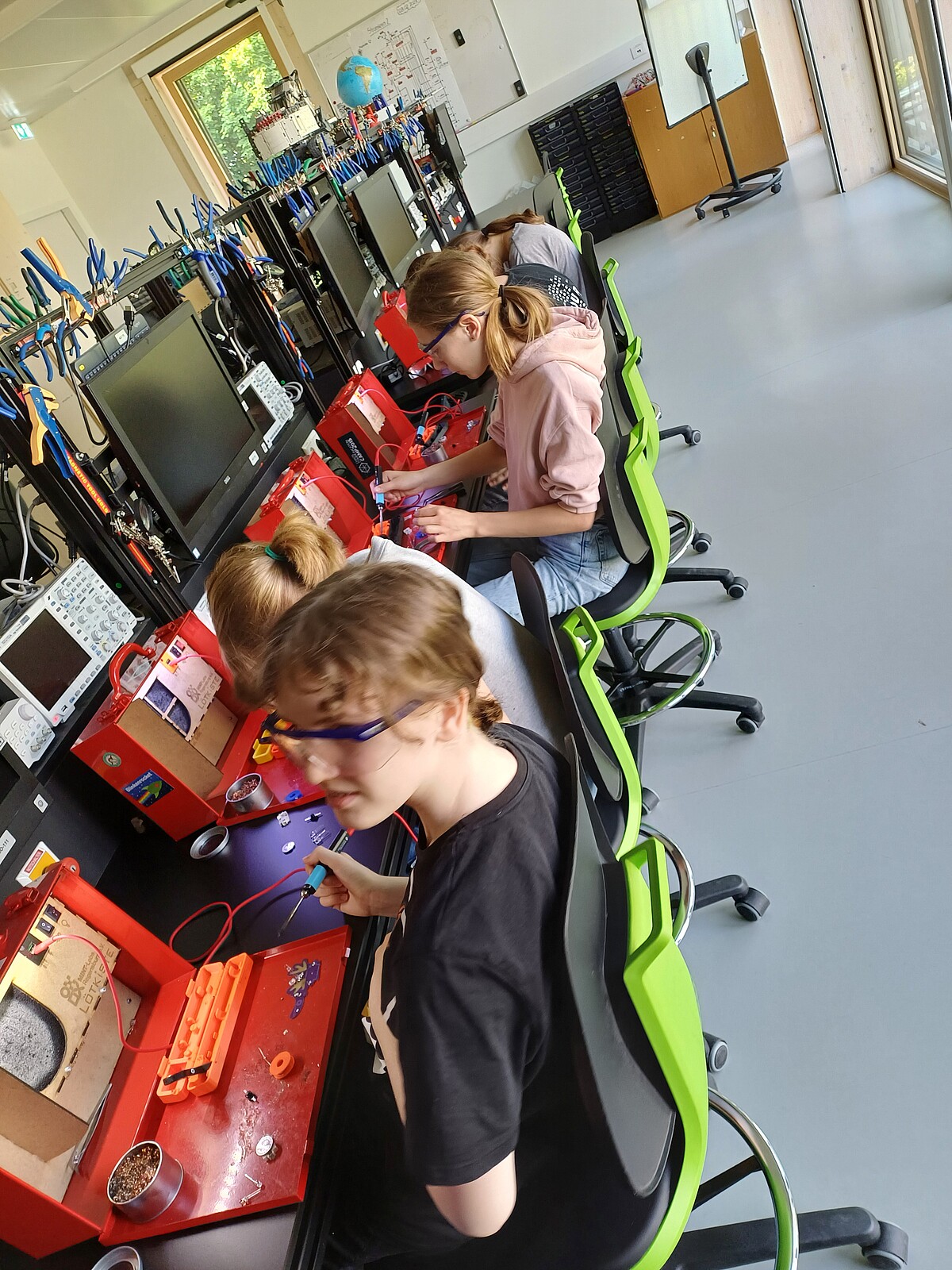 Endlich war es so weit. Nach den Pfingstferien durfte der mathematische Zweig der Klasse R8A (2023_2024) in den MINT-LABS Löten. Es wurde erklärt, wie verschiedene Stromkreise funktionieren, was LEDs sind und auf was wir achten müssen. Gelötet hatten von uns bisher die wenigsten. Aber es hat Spaß gemacht und war mal etwas anderes.