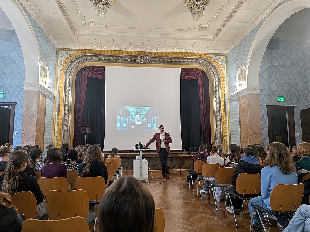 Am gestrigen Donnerstag wurden die Schülerinnen der R 8 in einem Vortrag von Staatsanwalt Wimmer rund um das Thema Handy und Strafrecht fit gemacht. Zu Beginn stimmte ein Video des Justizministeriums mit dem Influencer und TikTok-Artist Falco Punch auf den richtigen, korrekten und fairen Umgang mit dem Handy ein. Anschließend sensibilisierte Herr Wimmer die Mädchen für die Reichweite der digitalen Welt, die möglichen Strafen, die ab 14 Jahren folgen können, Straftaten im Internet und ermutigte die Mädchen dazu, sich bei Problemen, Freunden, Eltern, Lehrkräften oder der Polizei anzuvertrauen.