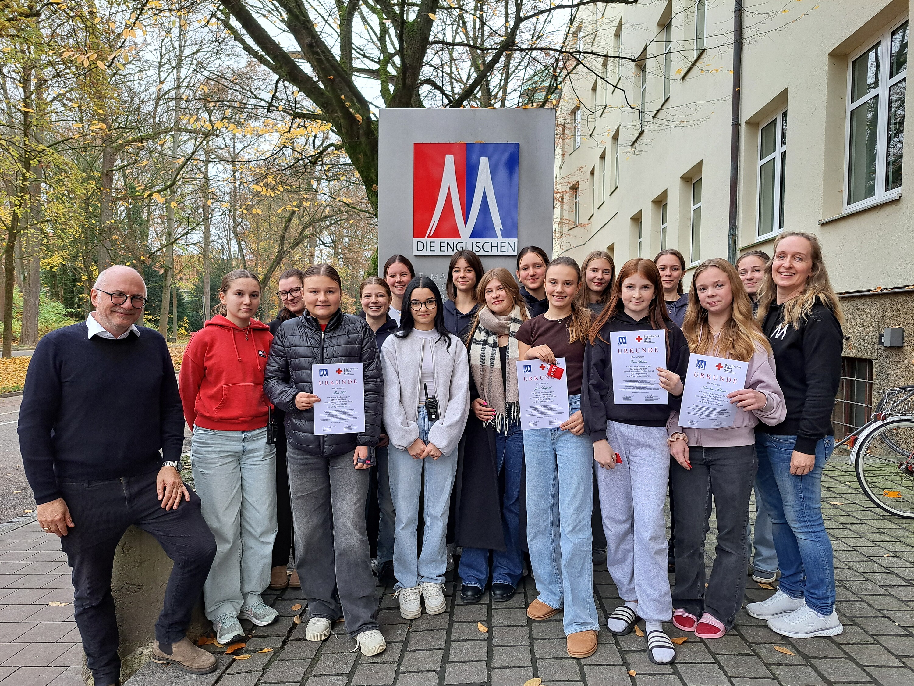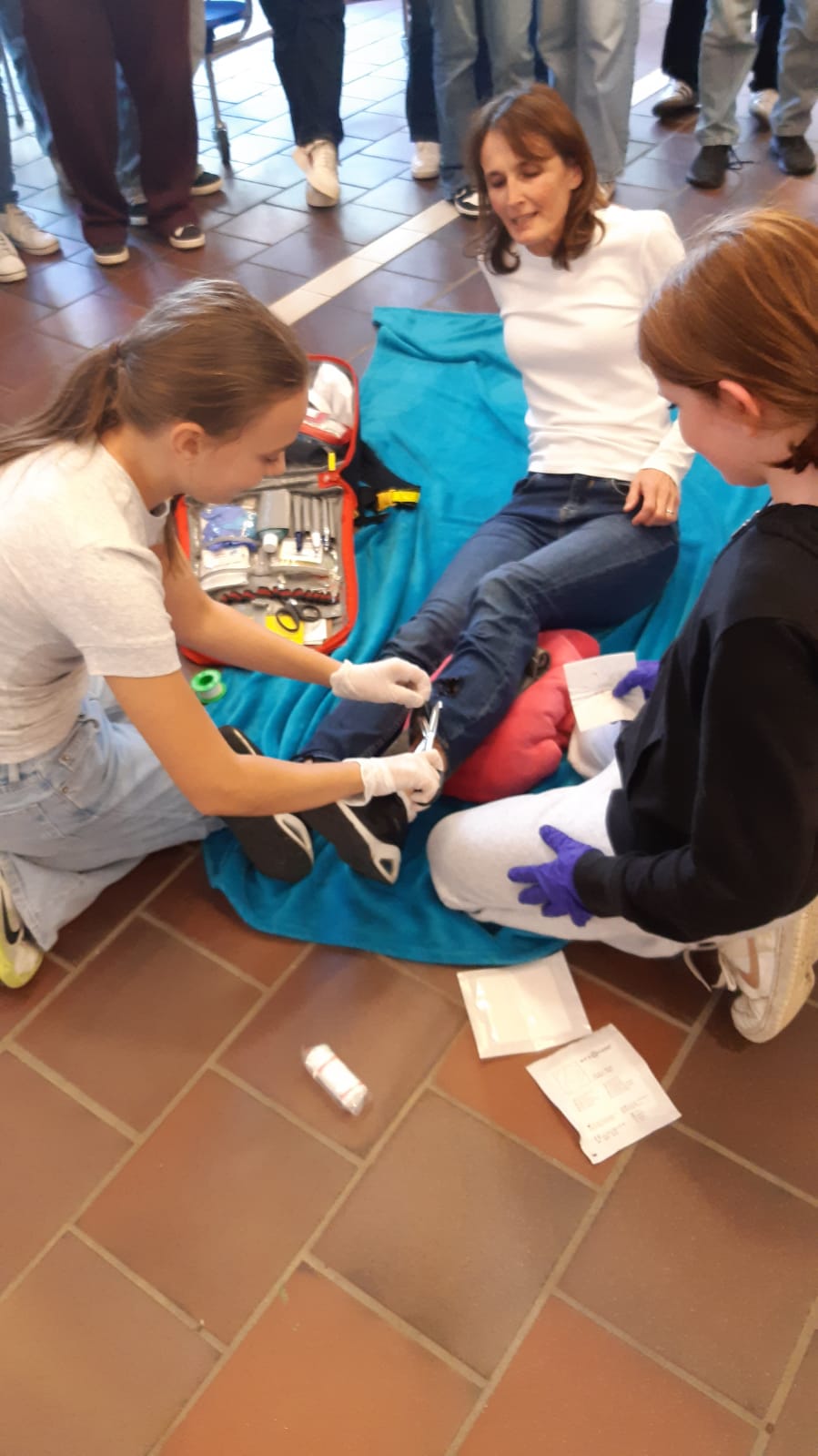 Auch in diesem Schuljahr wurde unser Team von den Schulsanitäterinnen der Realschule wieder verstärkt. Vier neue, gut ausgebildete Mädels stehen bereit, um bei kleinen und größeren Notfällen an unserer Schule zu helfen. Die Schülerinnen haben im Oktober ein sehr arbeitsintensives Ausbildungswochenende absolviert. Neben der theoretischen Ausbildung erlernten die Schülerinnen neue praktische Maßnahmen wie beispielsweise die Blutdruckmessung und den Bodycheck. Am Ende des anstrengendem, aber schönen Wochenendes haben alle die Prüfungen mit Bravour bestanden. Als Anerkennung dieser Leistung und Ihres Engagements für unsere Schule erhielten die neuen Schulsanitäterinnen von unserem Schulleiter Markus Birner ihre verdienten Urkunden und ein kleines hilfreiches Geschenk.