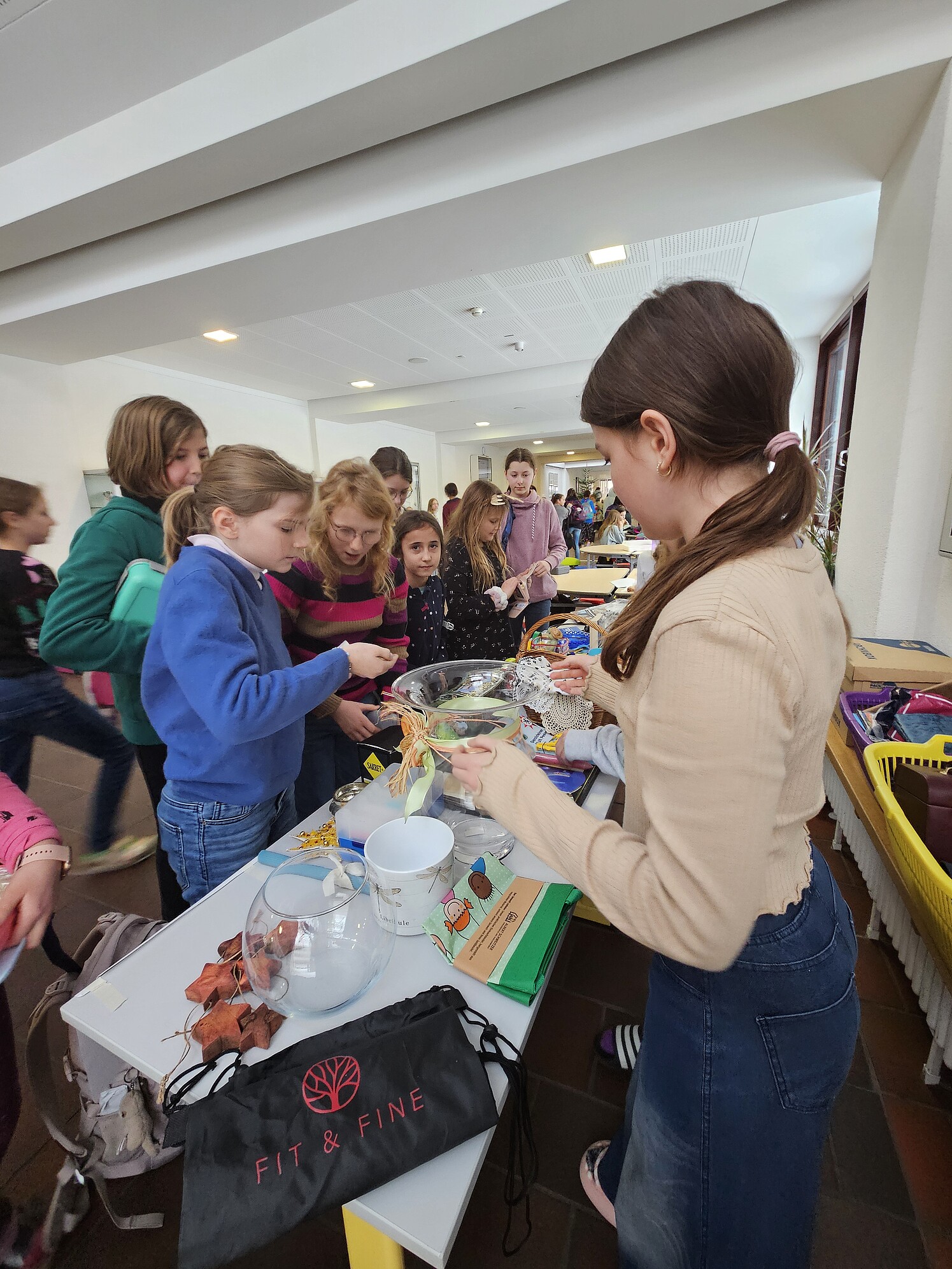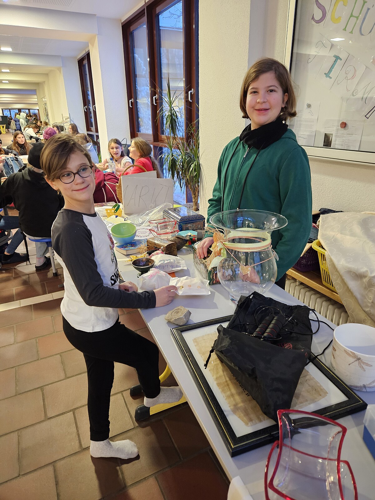 Da alle Projekte der Mary-Ward-Schwestern in Afrika – vom Kinderheim über die Schulen bis zu den Kliniken sowie den sozialen und pastoralen Einrichtungen – mit monatlich ca. 20 000 Euro unterhalten werden müssen, wollten die evangelischen Schülerinnen der 6. Klassen am Gymnasium vor Weihnachten einen kleinen Beitrag leisten. Ein an drei Tagen durchgeführter Flohmarkt brachte 200 €, die zügig an die Schwestern überwiesen werden und den afrikanischen Kindern zu 100 % zugutekommen.