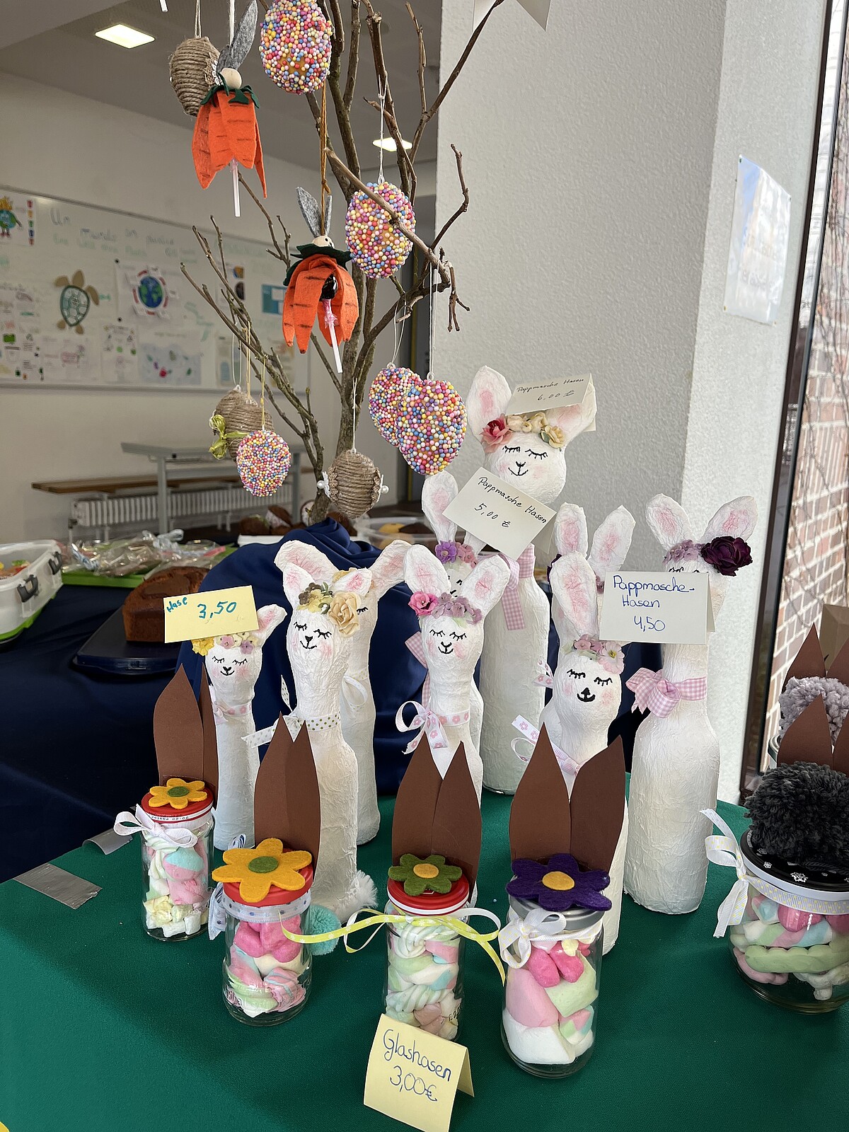 Die Schülerinnen der Ganztagsschule hatten sich im Vorfeld mit ihren Betreuerinnen mit viel Hingabe auf den Basar vorbereitet. Sie bastelten und gestalteten fleißig, um ihren Verkaufsstand mit einer großen Auswahl an schönen und leckeren Osterüberraschungen zu füllen. Die Mühe hat sich gelohnt: Mit ihrem Engagement und ihrer Kreativität machten sie den Osterbasar zu einem vollen Erfolg und sorgten für Vorfreude auf das bevorstehende Osterfest.