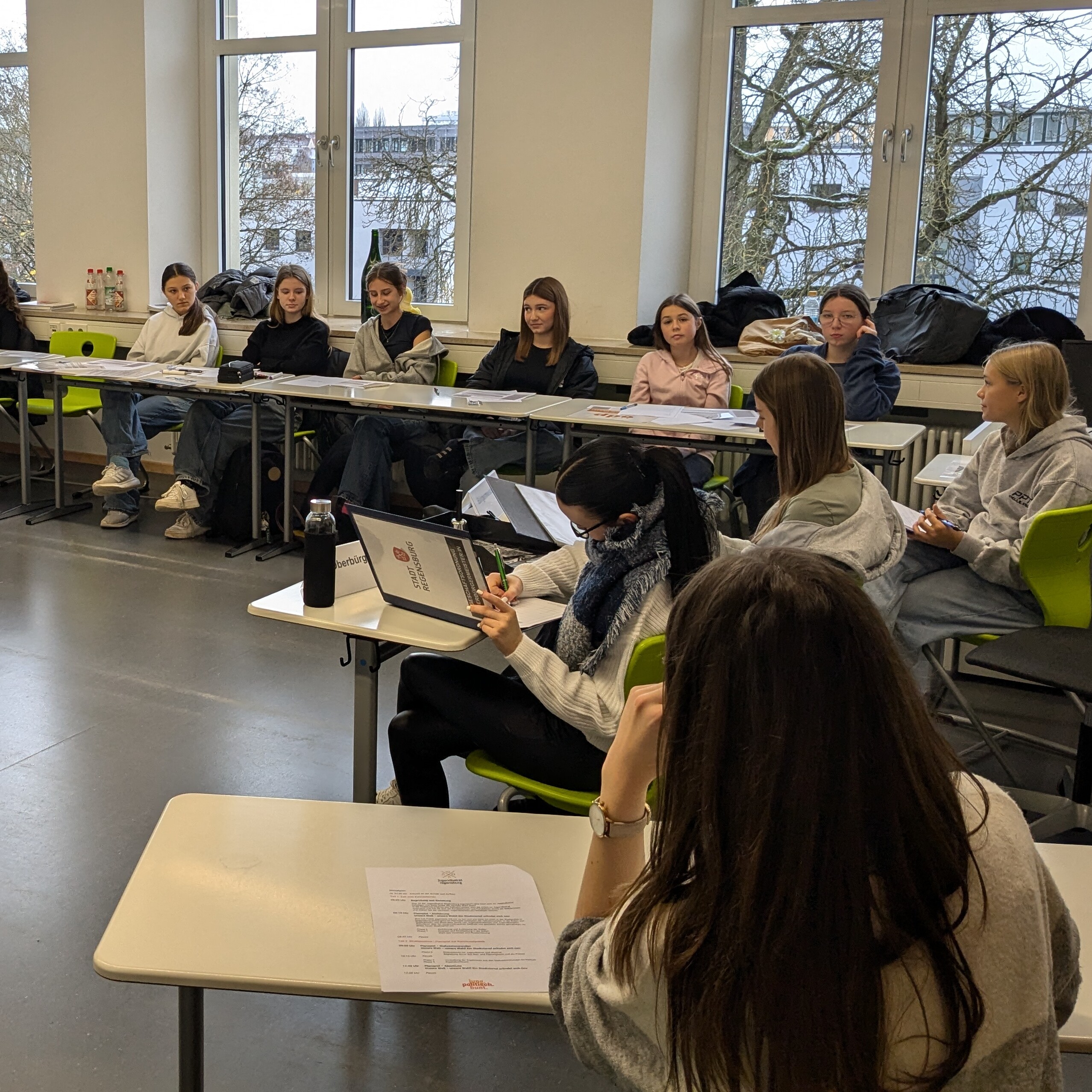 Christoph Seidl von der Stadt Regensburg, der für die Jugendbeiratswahl verantwortlich ist, referierte zum Abschluss über die Funktion des Jugendbeirats und den Ablauf der Wahl und beantworte offene Fragen. Alle Teilnehmerinnen erhielten eine Teilnahmebescheinigung, die sie ihren Bewerbungen beilegen können.