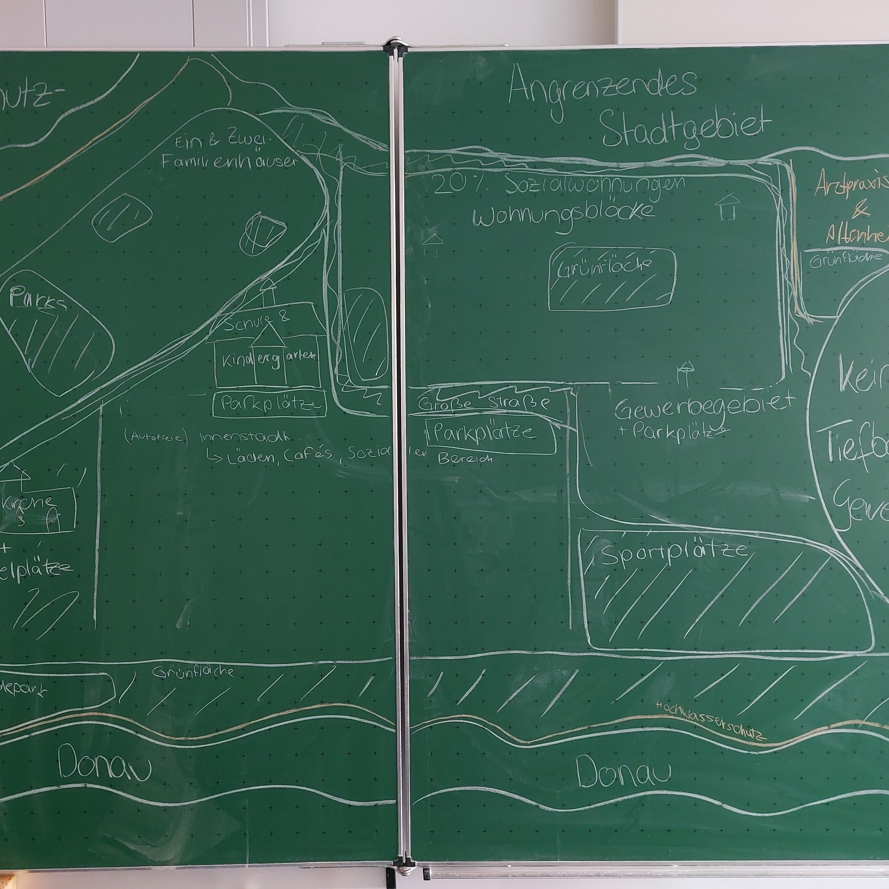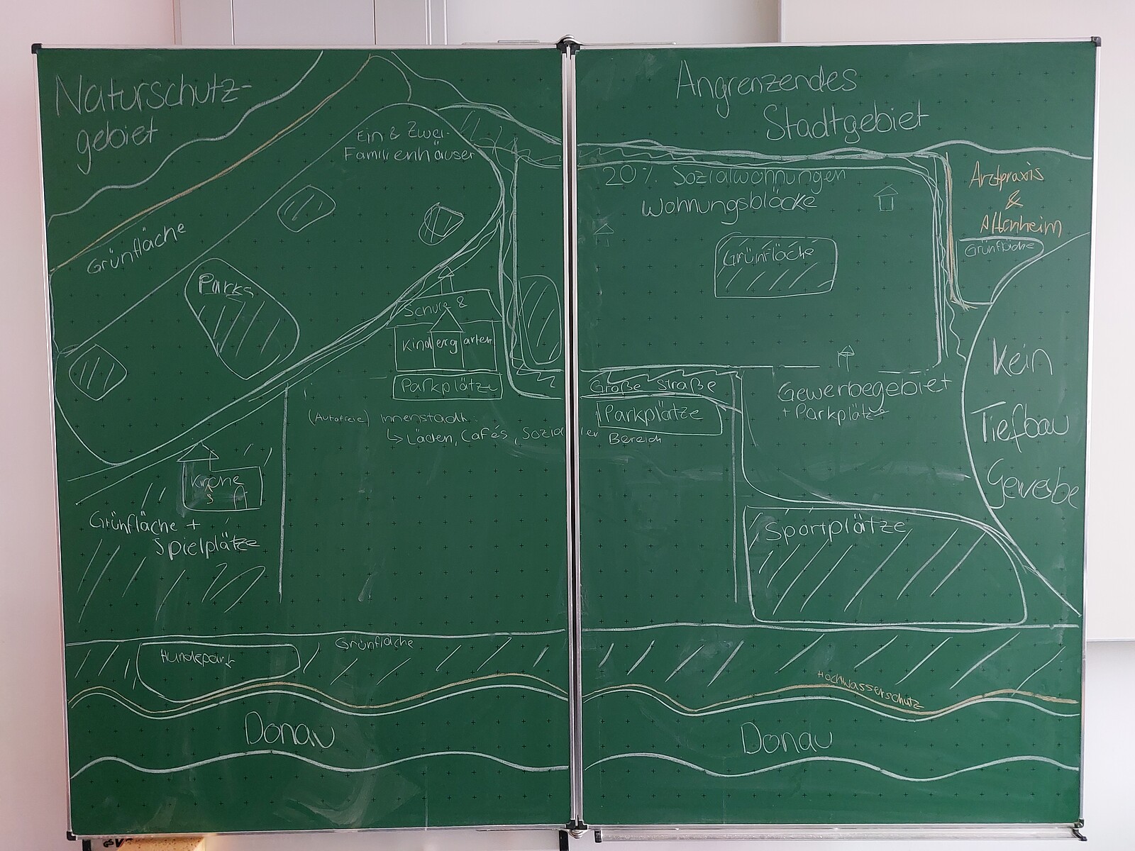 Im Zuge dieser Wahl fand für Schülerinnen der 9. und 11. Klassen letzte Woche das Planspiel zur Jugendbeiratswahl statt. Dabei schlüpften sie in verschiedene Rollen wie Vertreter politischer Parteien, Jugendbeiräte oder Interessenvertreter (z.B. Bund Naturschutz, Automobilindustrie, Immobilieninvestoren) und simulierten eine Jugendbeirats- und eine Stadtratssitzung. Ziel der jeweiligen Sitzung war es, einen Bebauungsplan für ein Stadtgebiet zu erstellen. Dabei konnten Luxus- und Sozialwohnungen, Einfamilienhäuser, Studenten- und Altenheime sowie Spielplätze, Garagen, Parks, Supermärkte, Straßen, uvm. errichtet werden. Eifrig erarbeiteten und diskutierten die Jugendlichen verschiedenste Lösungen. Auch die Presse erhielt eine Rolle. Sie verfolgte die Sitzungen gebannt und berichtete der jeweils anderen Gruppe vom Verlauf der parallel stattfindenden Sitzung. Anschließend wurden die Bebauungspläne im Plenum verglichen und die Ergebnisse reflektiert.