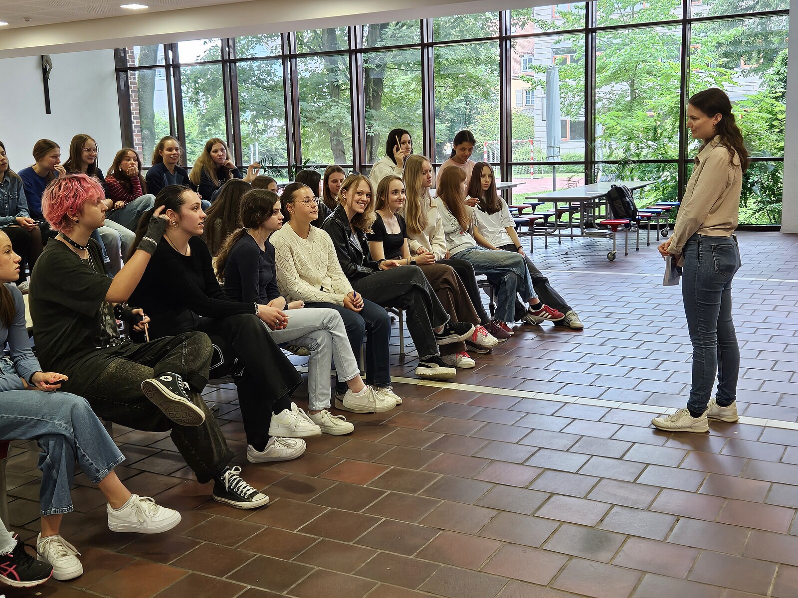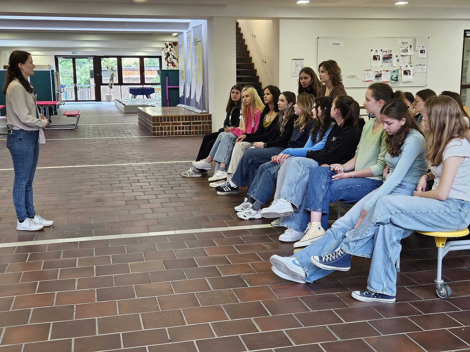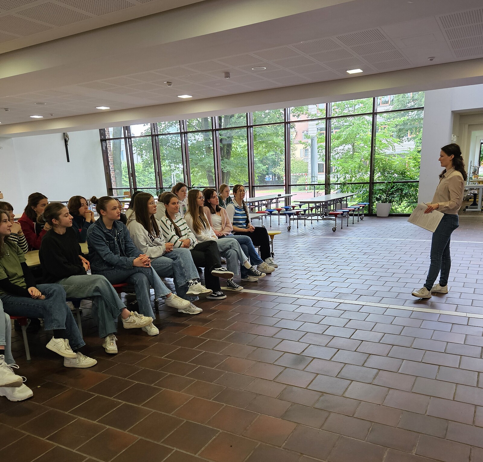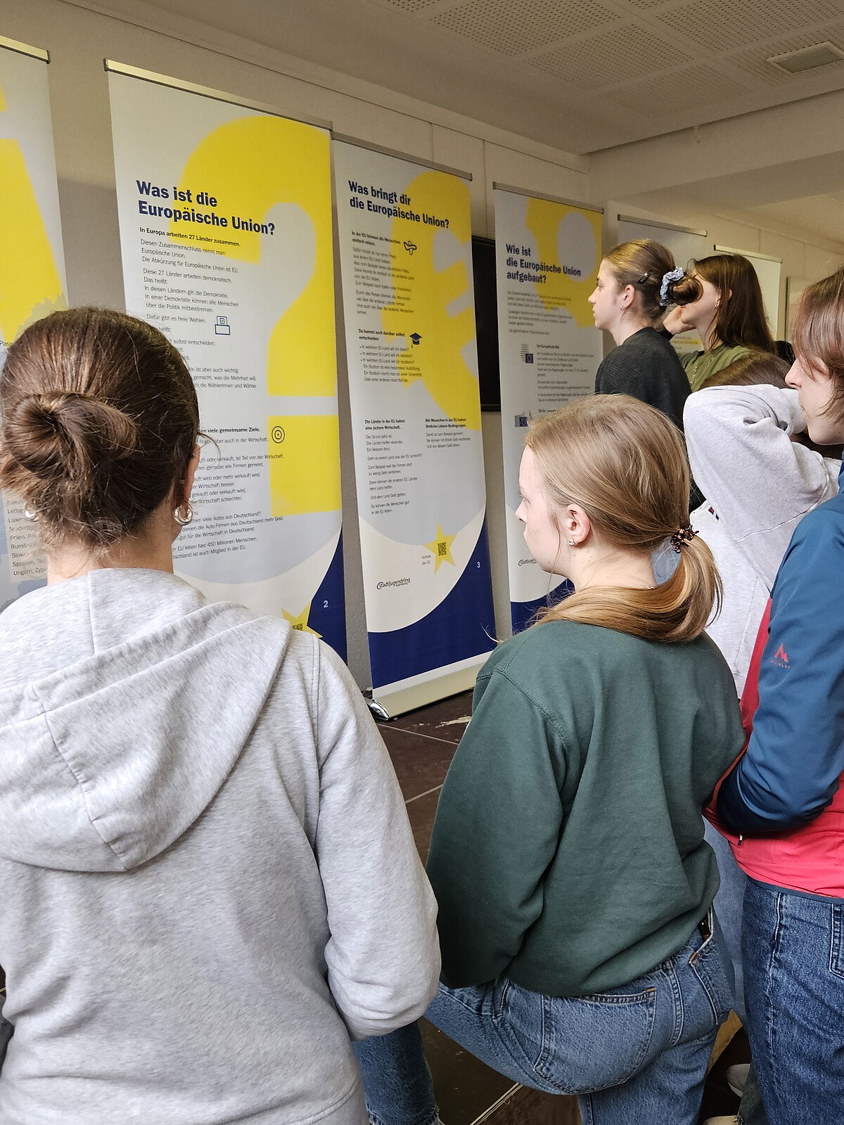 Da alle Jugendlichen ab 16 Jahren erstmals in diesem Jahr wählen gehen können und dann auch noch gleich bei der EU-Parlaments-Wahl, wurde in zahlreichen Klassen über diese Wahl gesprochen, der Wahl-O-Mat gemacht sowie die Ausstellung des Stadtjugendrings in unserer Pausenhalle besucht. Frau Hörmann vom Stadtjugendring befragte verschiedene Klassen zu den Themen Demokratie, Mitwirkung und Beteiligung von Jugendlichen sowie zum Wahlrecht. Anschließend arbeiteten die Schülerinnen die 10 Info-Plakate zur EU und zur Wahl des Parlaments durch. Wer wollte, konnte ein Quiz lösen. Ungewöhnlich war die Sprache der Plakate, da diese in einfacher Sprache verfasst worden sind, um die Ausstellung für alle Schularten zur Verfügung zu stellen. Die 9. Klassen fanden das gut, den Schülerinnen der 11. Klassen, die mit einem großen EU-Vorwissen kamen, hat die fachliche Tiefe etwas gefehlt. Am Ende haben alle Schülerinnen einen guten Überblick über die EU-Institutionen und die EU-Parlaments-Wahl erhalten.