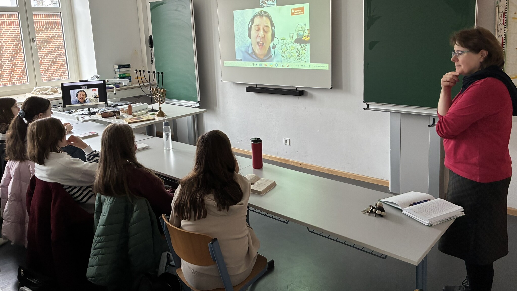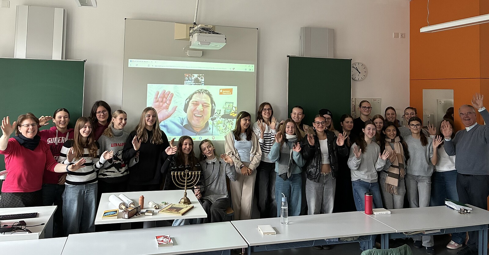 Für die Evangelischen Schülerinnen der 9. Jahrgangsstufe mit ihrer Lehrkraft, Frau Dr. Kunert, und der Klasse 9C des St. Marien-Gymnasiums der Schulstiftung der Diözese Regensburg und Domvikar Albert,bedeutete der Live-Stream ins Helige Land am 28. November 2025 ein besonderes Erlebnis. Gefördert durch die Stadtsparkasse in Regensburg wurde der Kontakt mit dem Lea-Fleischmann-Bildungsprojekt in Israel ermöglicht.