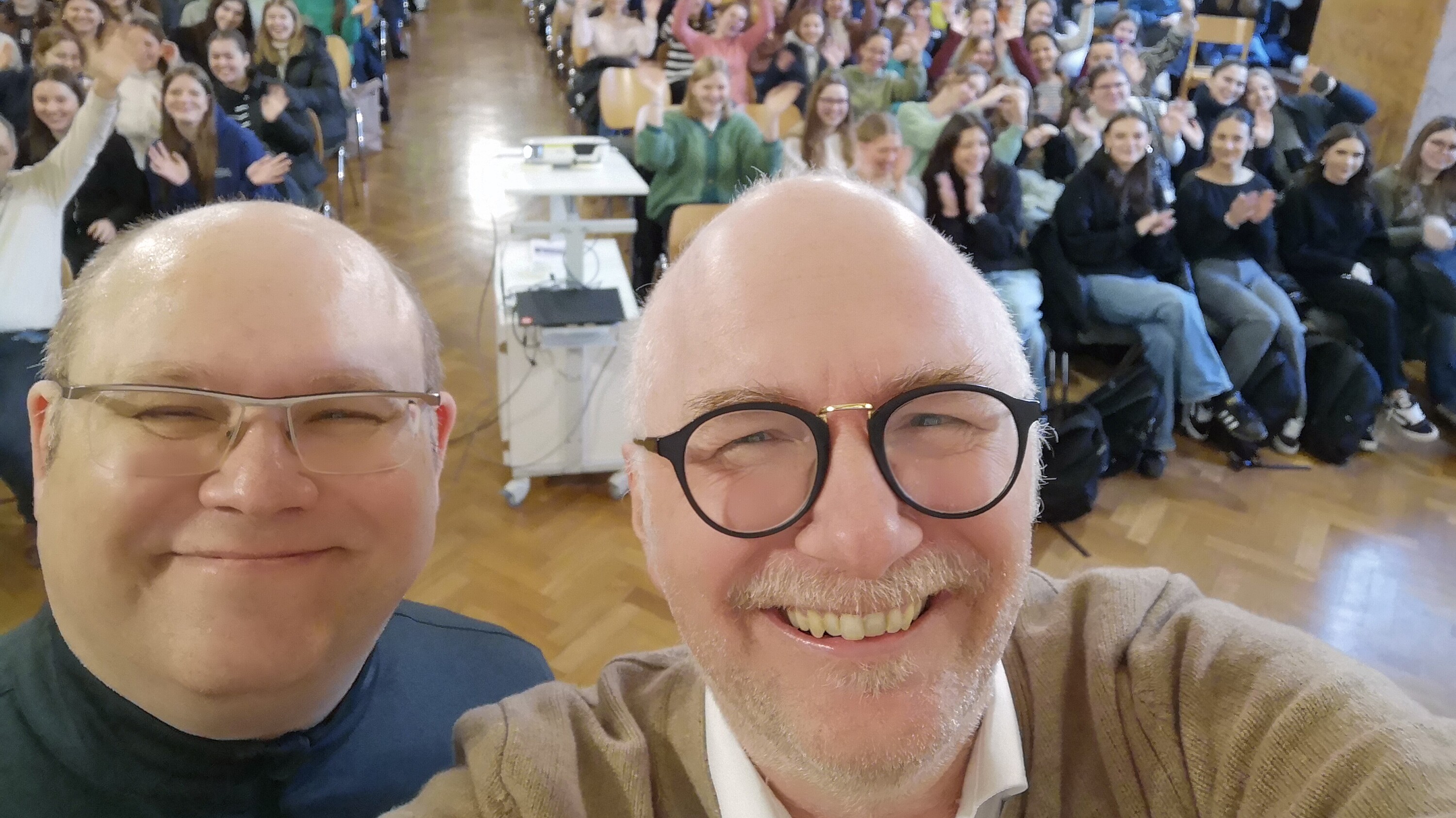 Am 16. Januar 2025 begrüßte Herr Birner und die Fachschaft Englisch den Historiker und Amerika-Experten Dr. Markus Hünemörder im Festsaal der St. Marien-Schulen. Schülerinnen der Realschule (R 10) und des Gymnasiums (G 11/12) lauschten gespannt dem englischsprachigen Vortrag zur aktuellen politischen Lage in den Vereinigten Staaten.