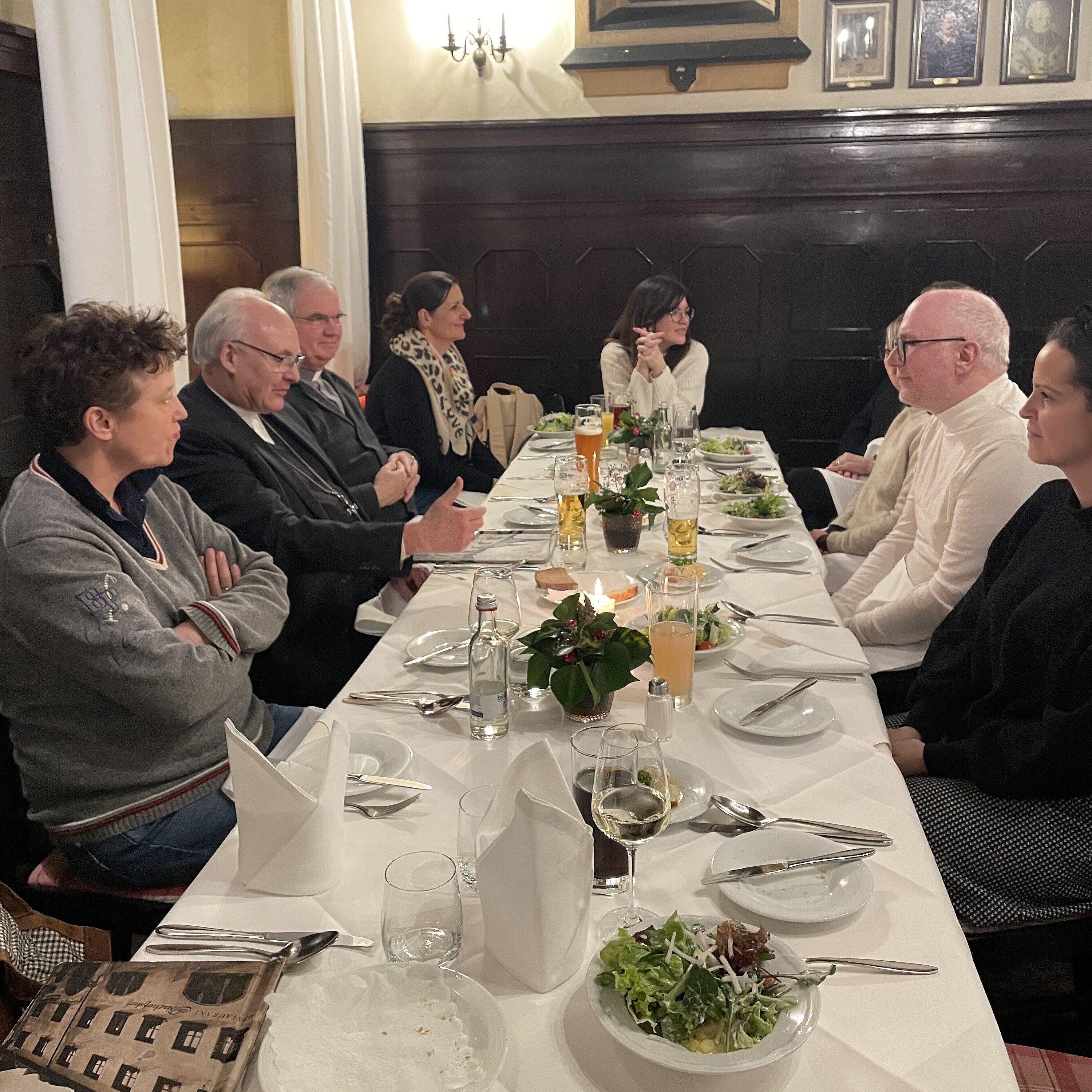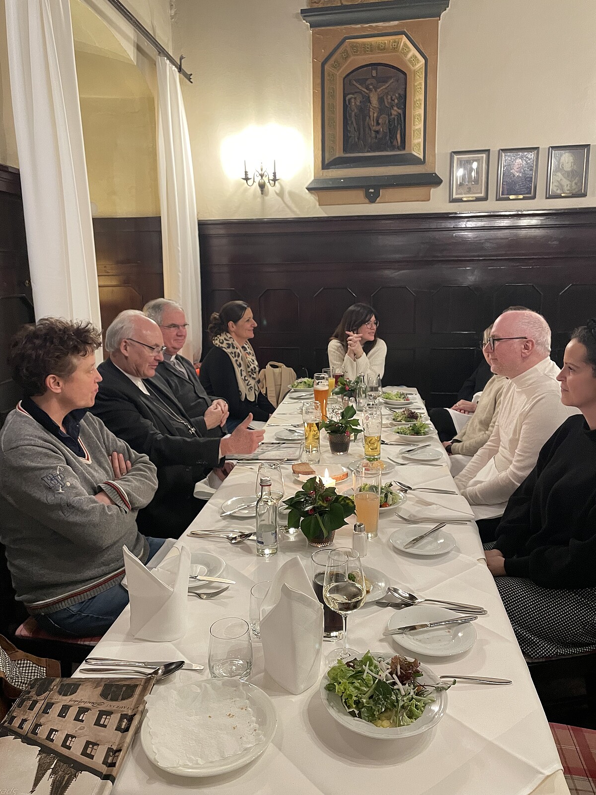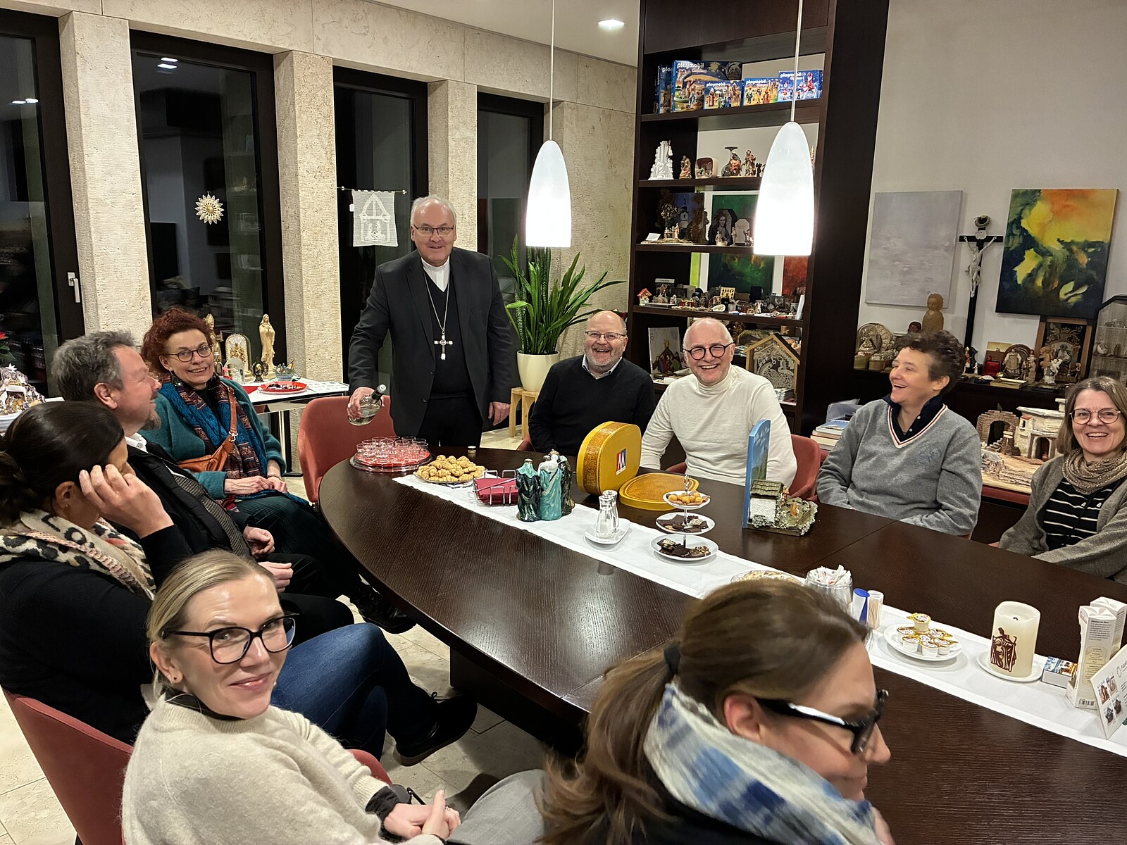 Damit „Bruder Leib“ nicht ermattet, gab es zur Halbzeit eine kleine Stärkung, damit die dreistündige Fortbildungseinheit glänzend bestanden werden konnte. Beim abschließenden gemeinsamen Abendessen wurden dann die Inhalte nochmals vertieft und als Anregung für den pädagogischen Alltag an den Schulen diskutiert, so dass die Gäste schwer beeindruckt von der Leidenschaft ihres Bischofs voller Eindrücke spät den Nachhauseweg antraten, um den Schutzbefohlenen später etwas davon zuteil werden zu lassen, was sie unter Anleitung ihres Oberhirten alles selbst gelernt haben.