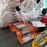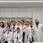 Die Schülerinnen lernten nicht nur die theoretischen Grundlagen dieses Verfahrens kennen, sondern konnten auch selbst aktiv werden. Sie führten die Analyse des Genlocus D1S80 unterschiedlicher genetischer Proben durch. Dazu nutzten sie die PCR (Polymerase-Kettenreaktion) um DNA-Sequenzen zu vervielfältigen und führten anschließend eine Gelelektrophorese durch, um den Täter eines fiktiven Kriminalfalls zu identifizieren.