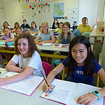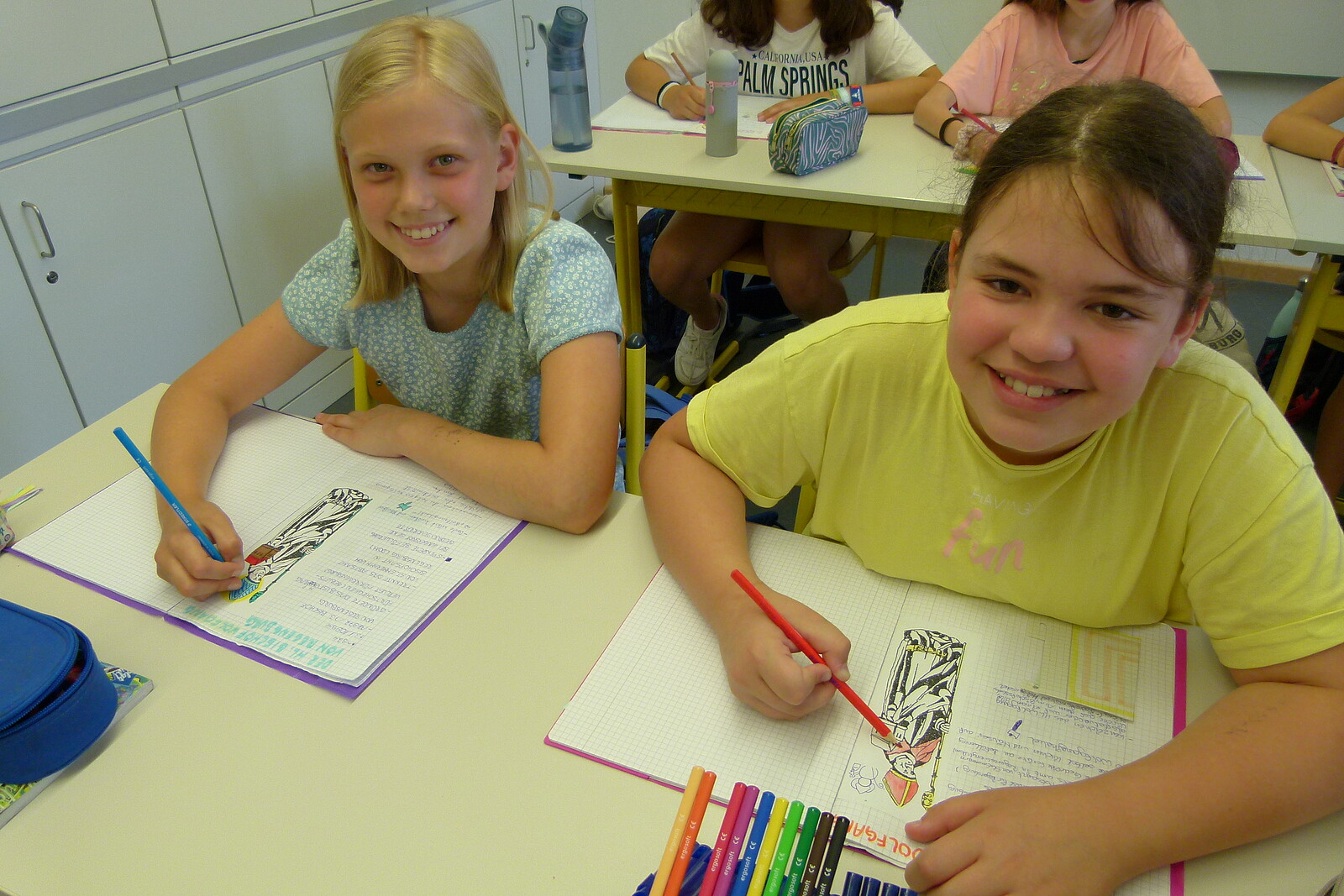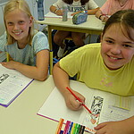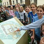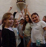 Erst einmal galt es im Reliunterricht in die scheinbar ferne Vergangenheit des hl. Wolfgang abzutauchen. Aber was da zu entdecken war, war alles andere als von gestern... Der junge Wolfgang ist durch Wissensdurst und Begabung aufgefallen, so dass er die berühmte Schule der Benediktiner auf der Reichenau besuchen durfte. Dort lernte er unter dem alten Grundsatz „ora et labora“ (Bete und arbeite!) die Grundlagen damaliger Erkenntnisse, weil dem unbedingt ein „et lege!“ (und lies/studiere!) hinzugefügt werden muss, wie Pfarrer Albert seinen wissbegierigen Schülerinnen nahebringt. Dass Wolfgang dann so gescheit war, dass er seinen Lehrern Fragen stellte, auf die diese keine Antworten mehr wusste, gefällt den Mädchen genauso wie sie es ungerecht finden, dass Wolfgang deshalb von der Schule flog, weil er besser wurde als seine Lehrer. So jemand muss selbst unterrichten und das tat Wolfgang in Trier.