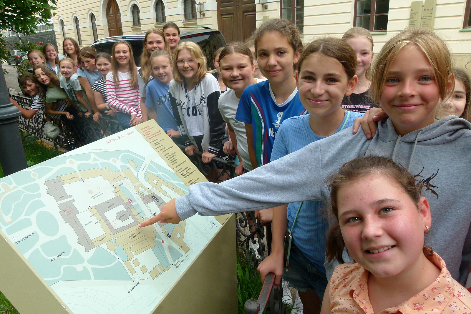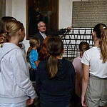 Für die St. Marien-Schulen in Regensburg ist er quasi ein Nachbar, denn das ehemalige Kloster St. Emmeram – heute das fürstliche Schloss Thurn und Taxis – grenzt unmittelbar an dem Gymnasium und der Realschule der früheren „Englischen Fräulein“ an. Da ist es nur recht und billig, dass die Schülerinnen der 5. Klassen zusammen mit ihrem Religionslehrer, Domvikar Andreas Albert, das Geburtsjubiläum des Diözesanpatrons mitfeiern.
