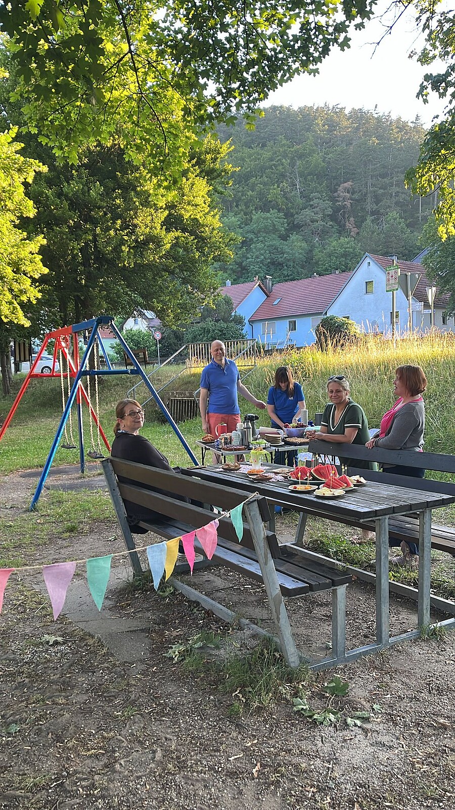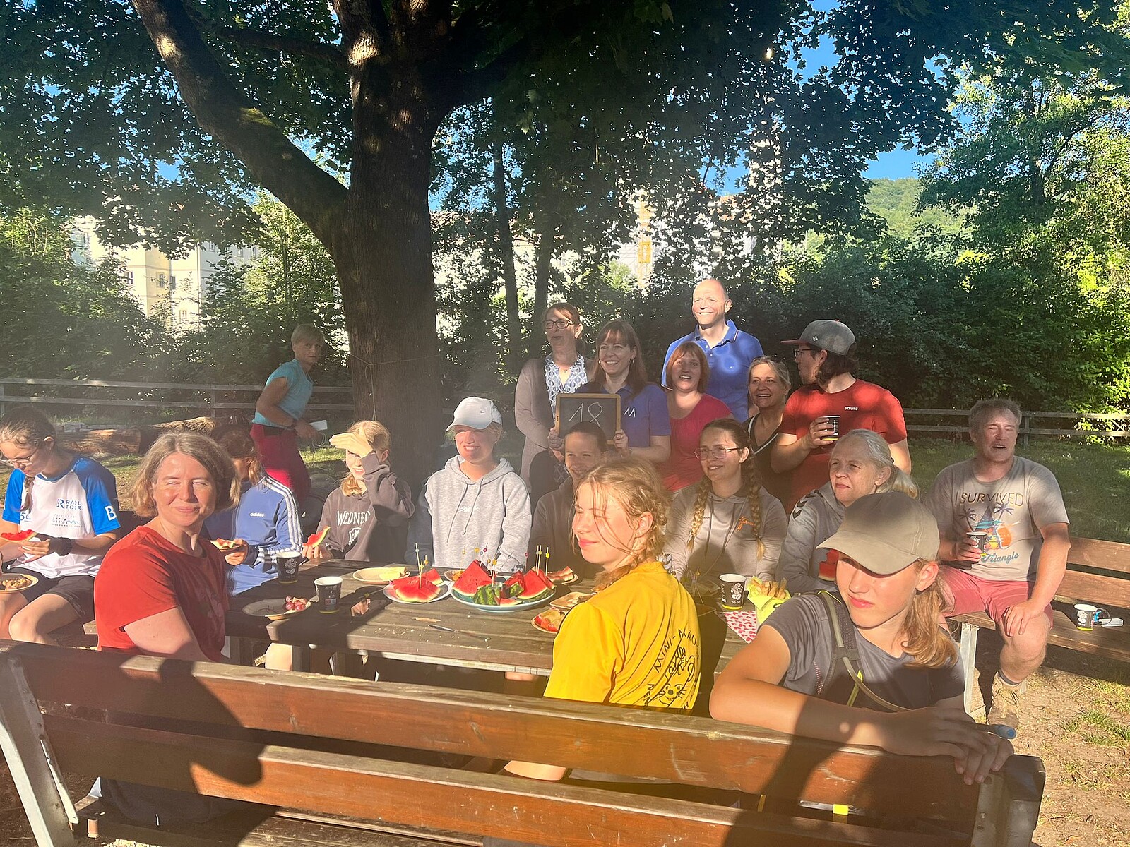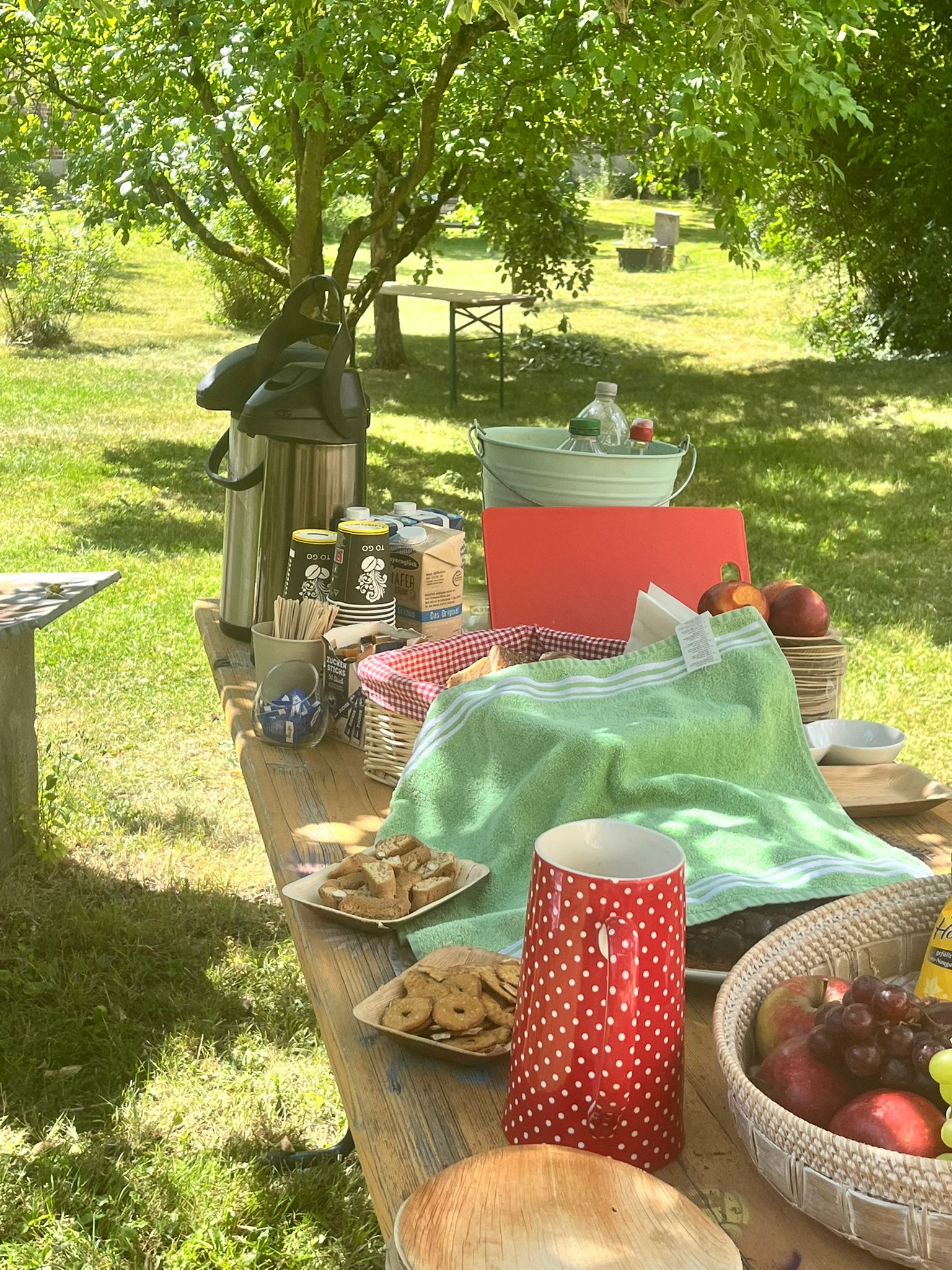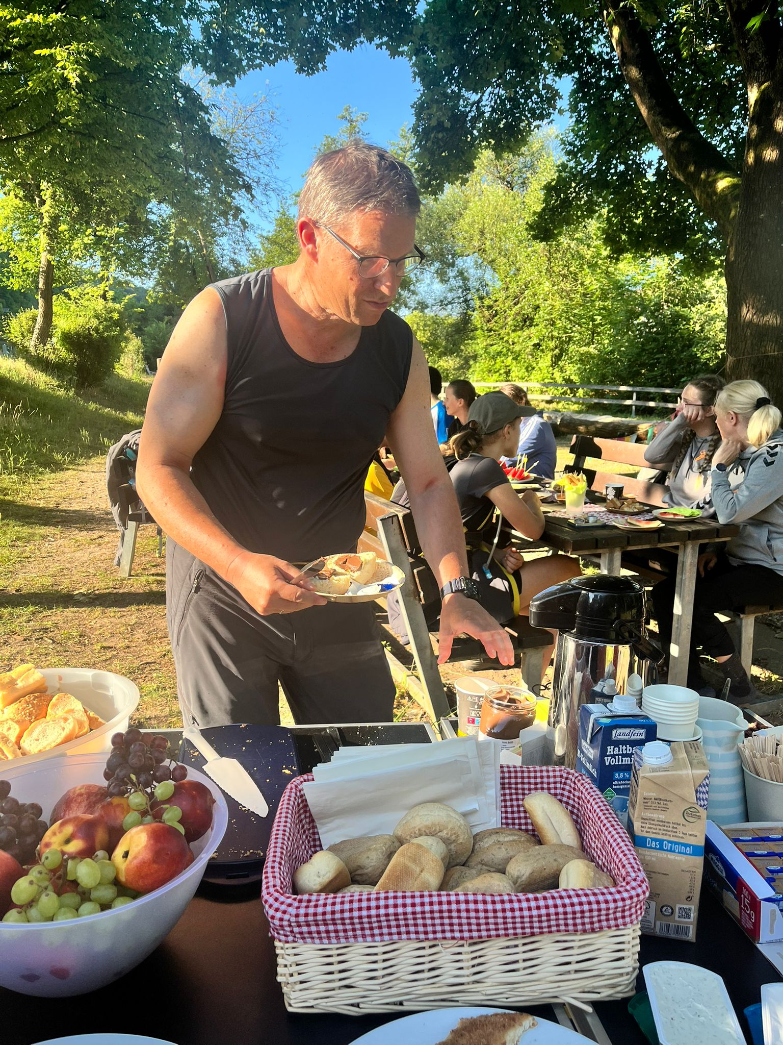 Der Förderkreis organisierte das Frühstück nach der durchwanderten Nacht in Pielenhofen (bei km 18!) und gestaltete die Urkundenverleihung beim Zieleinlauf an der Schule. Die fleißigen Helferlein waren schon früh auf den Beinen, kochten Kaffee, schnitten selbgebackenen Kuchen sowie frisches Obst und dekorierten nicht nur den Spielplatz sondern auch den Klostergarten für die müden Wanderer. Herzlichen Dank dafür.