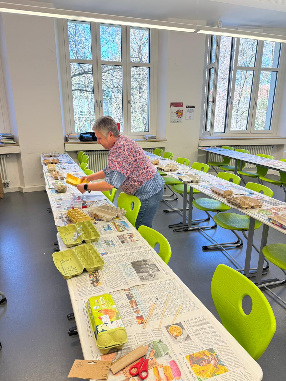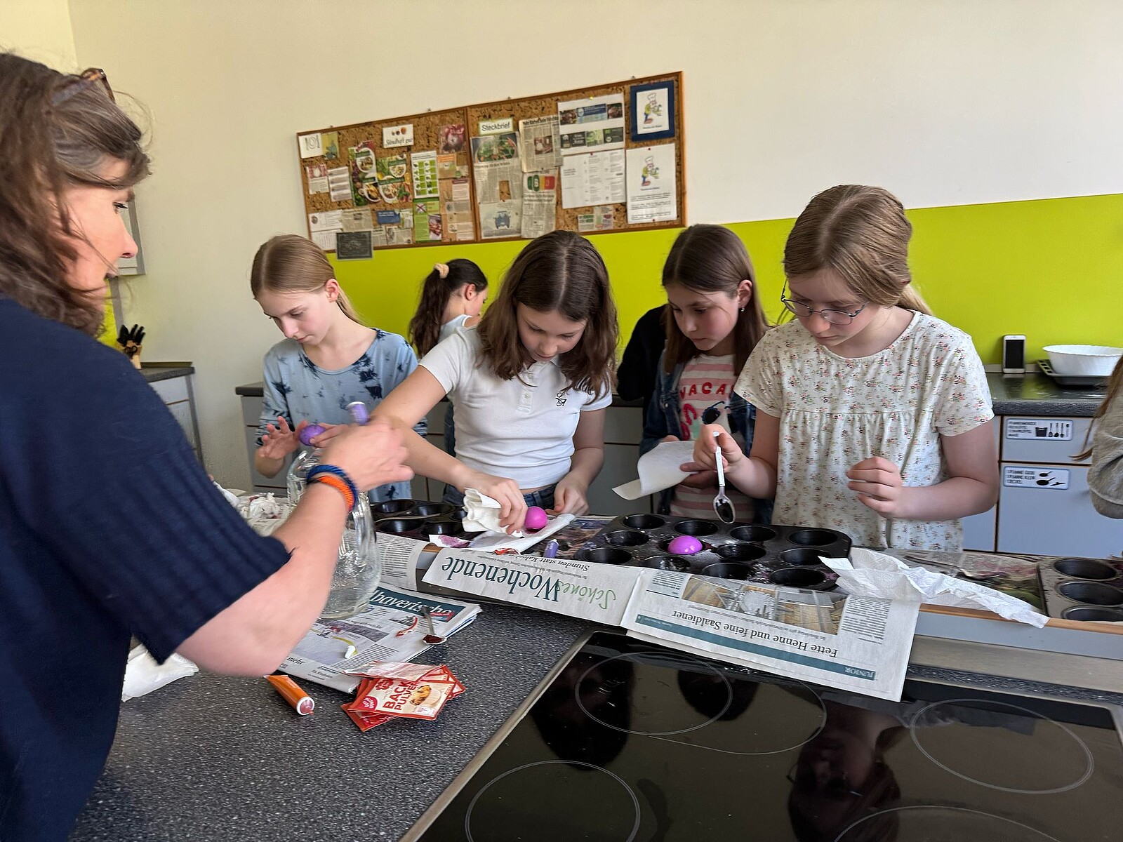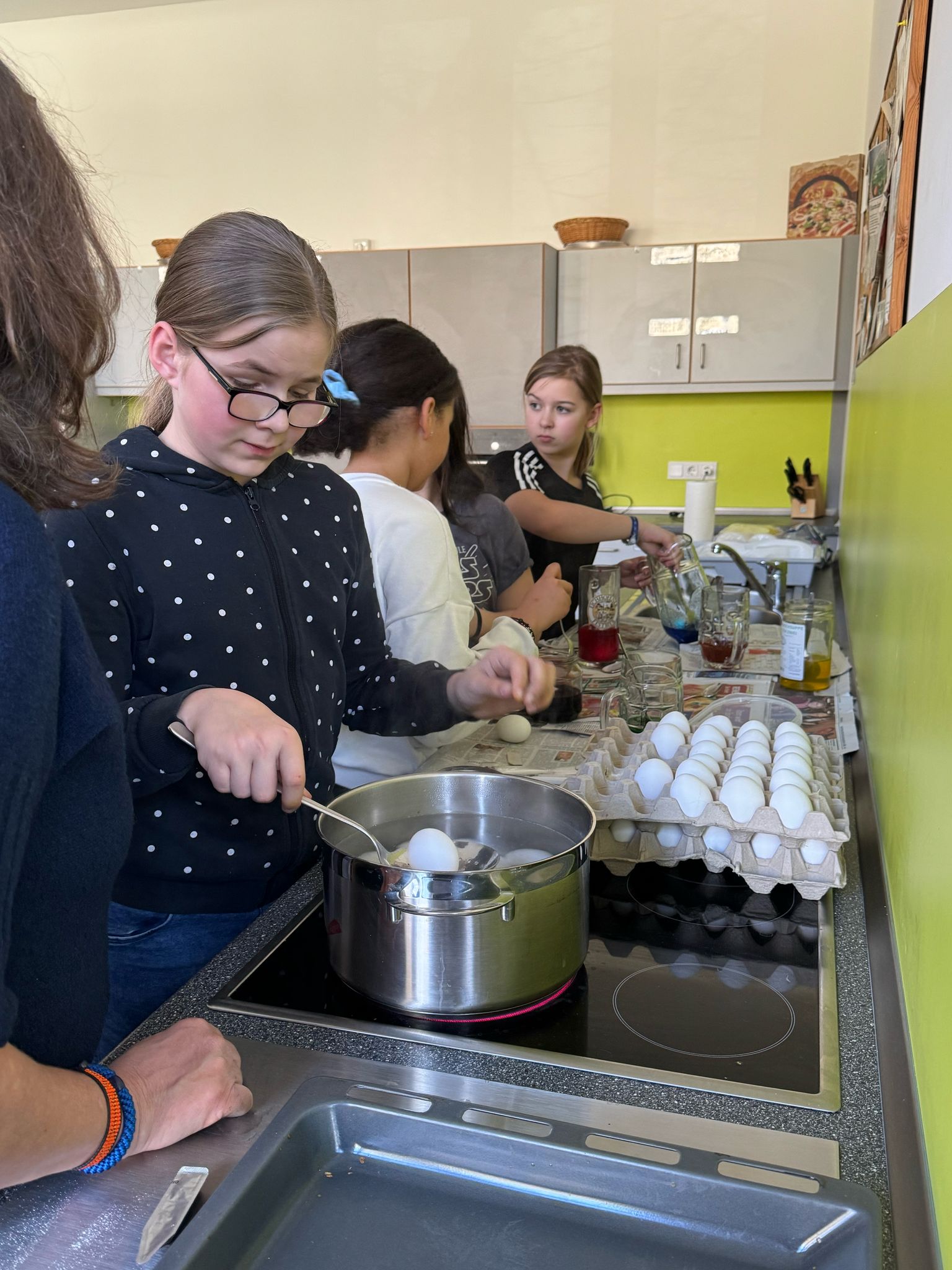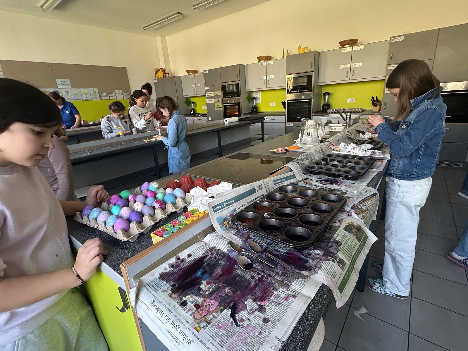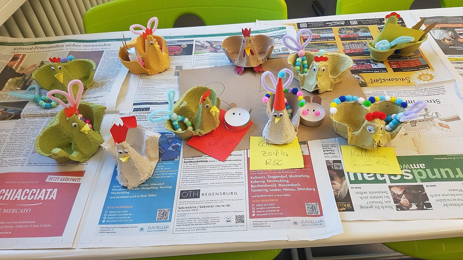 Im April fand unsere alljährliche Osteraktion statt - dieses Mal mit den 5. Klassen von Gymnasium und Realschule. Zusammen mit den Förderkreis-Mitgliedern wurde fleißig gebastelt, gebacken und Eier gefärbt. Die Mädls hatten eine aufregenden und bunten Nachmittag. Beim Gottesdienst mit Herrn Pfarrer Albert wurden die kreativ gestalteten Osterkerzen geweiht. Wir freuten uns über die zahlreiche Teilnahme und die eifrige Mitarbeit unserer Mädls. Es war wie immer eine gelungene Aktion.