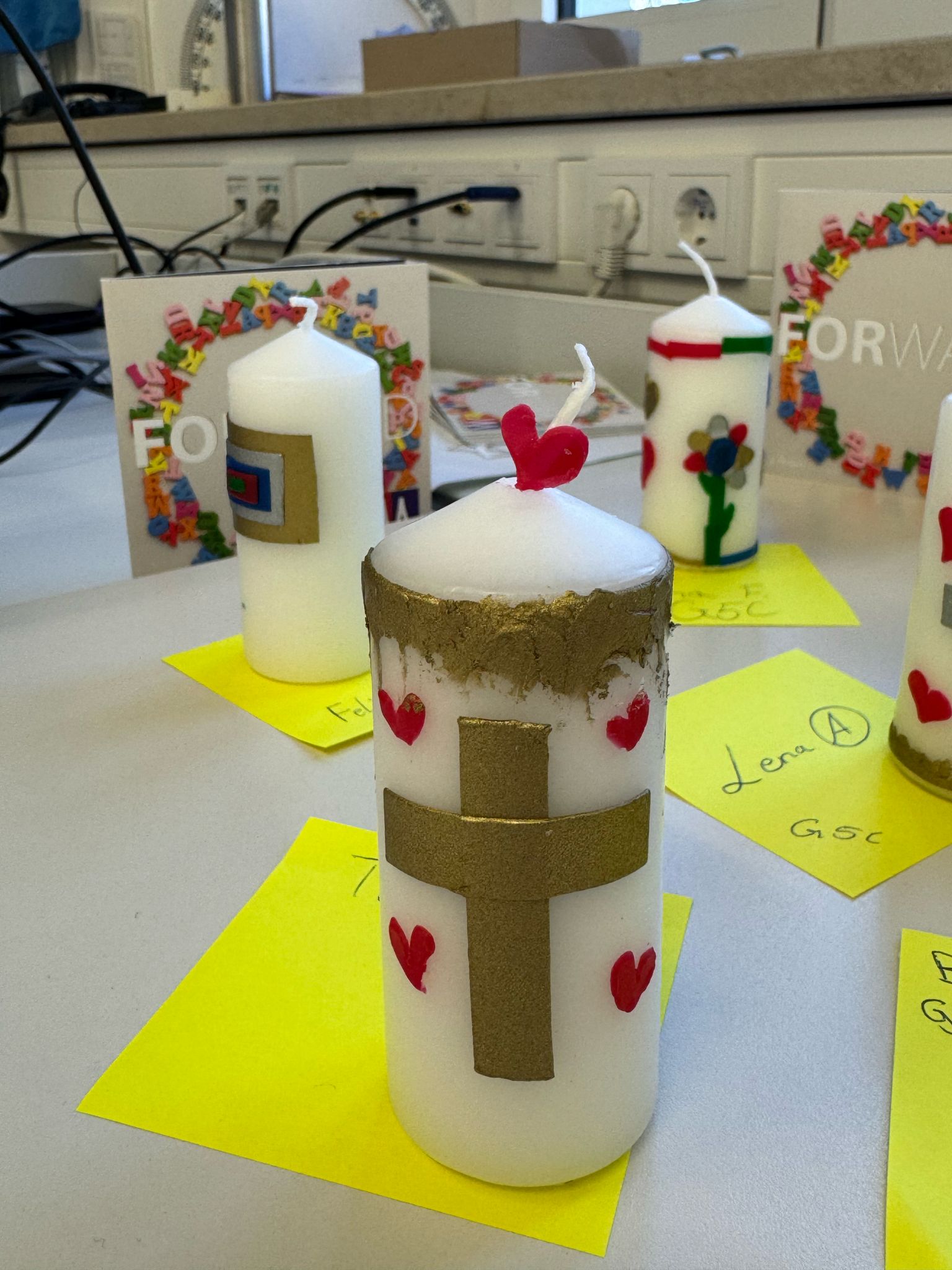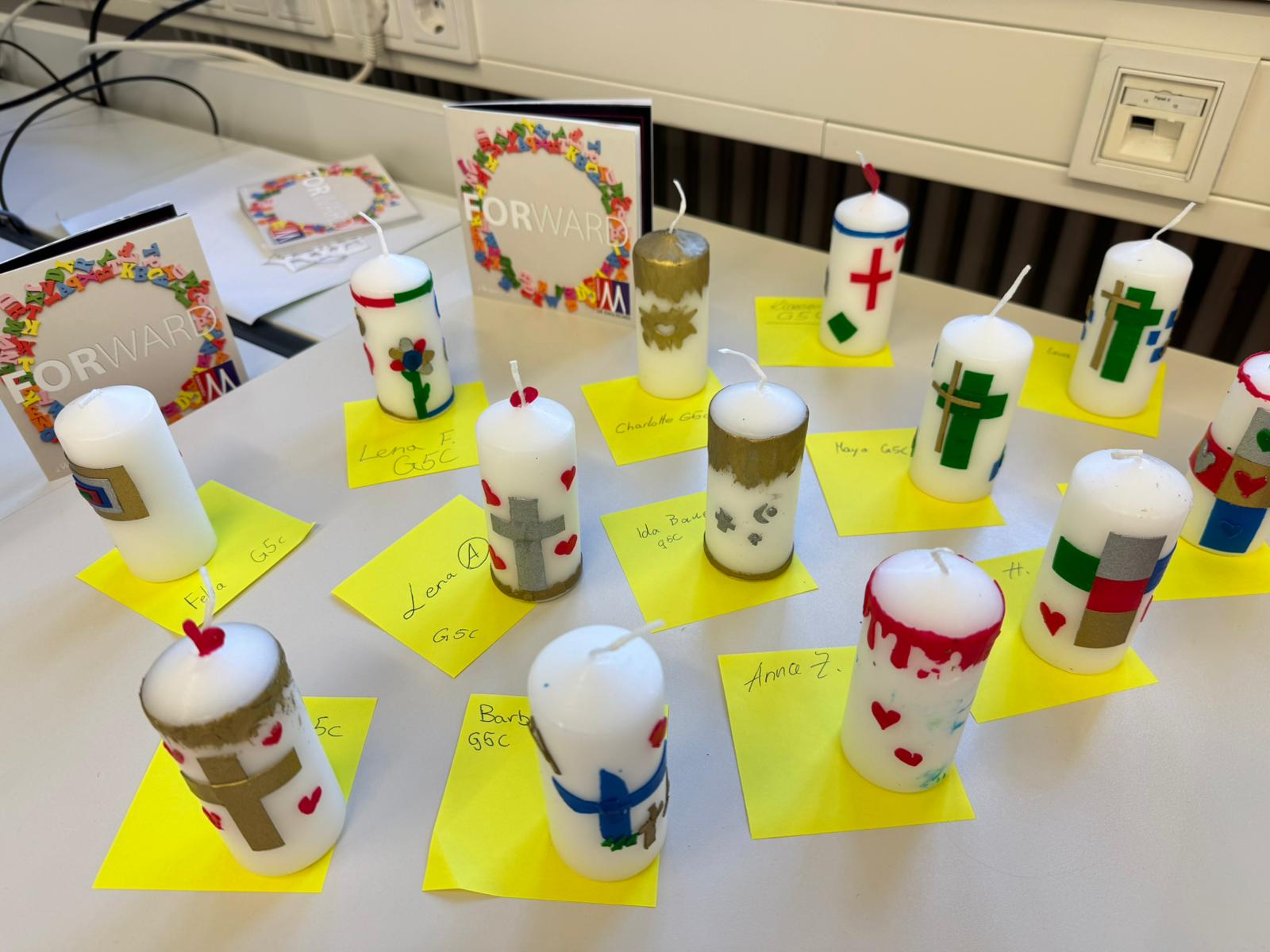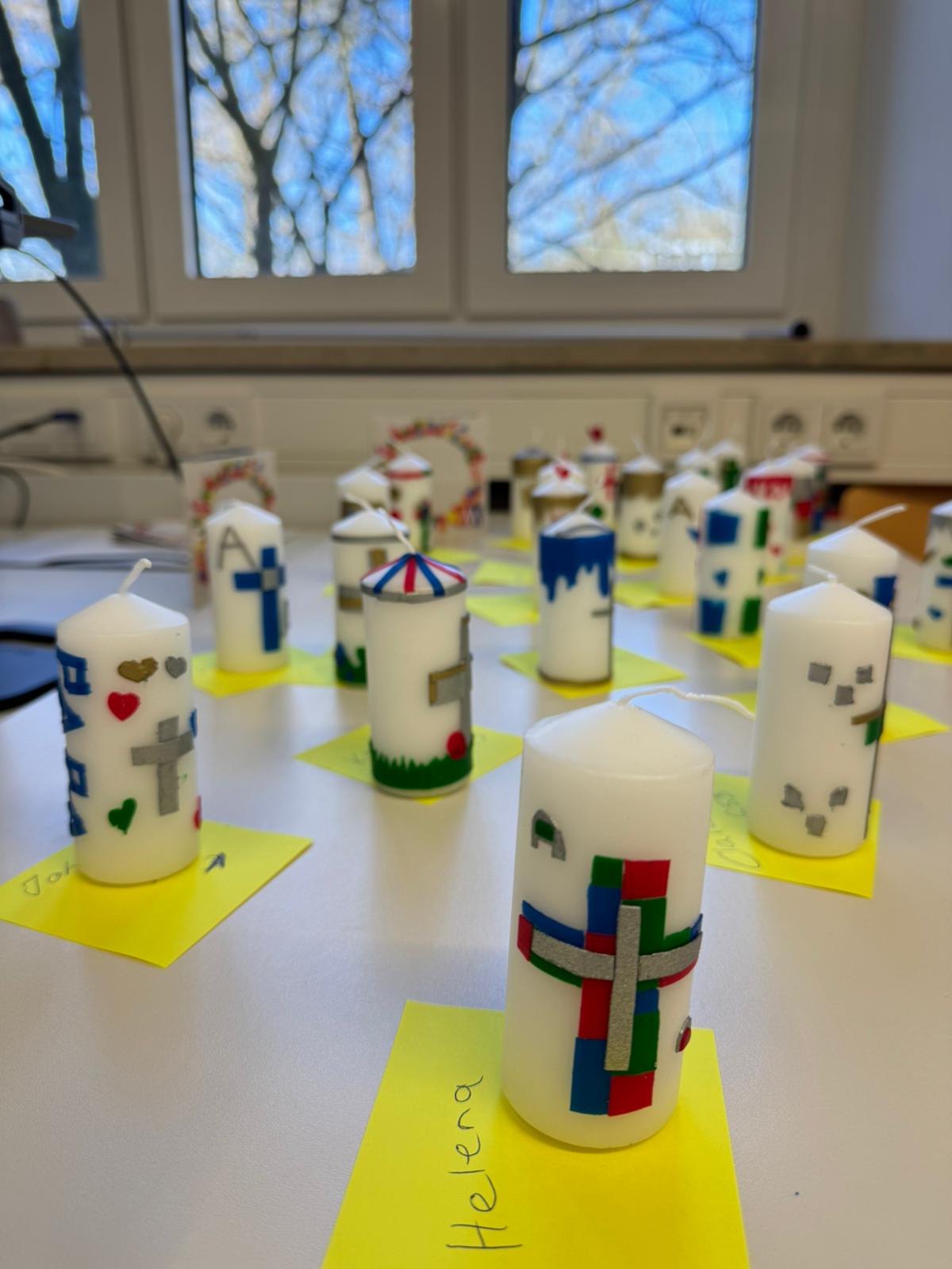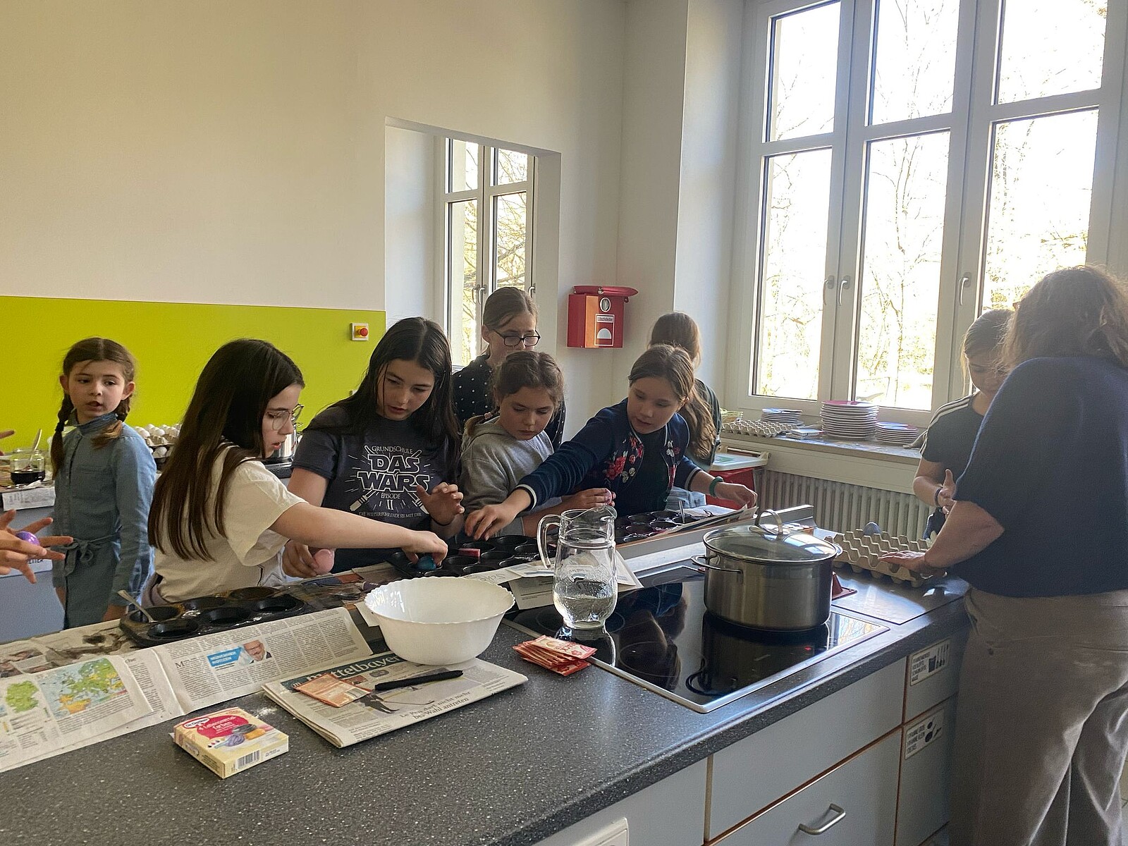 Im April fand unsere alljährliche Osteraktion statt - dieses Mal mit den 5. Klassen von Gymnasium und Realschule. Zusammen mit den Förderkreis-Mitgliedern wurde fleißig gebastelt, gebacken und Eier gefärbt. Die Mädls hatten eine aufregenden und bunten Nachmittag. Beim Gottesdienst mit Herrn Pfarrer Albert wurden die kreativ gestalteten Osterkerzen geweiht. Wir freuten uns über die zahlreiche Teilnahme und die eifrige Mitarbeit unserer Mädls. Es war wie immer eine gelungene Aktion.
