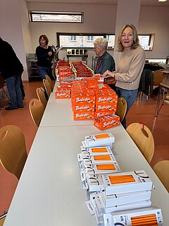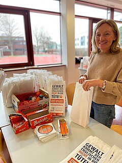 Der Förderkreis packt an! Unter dem Motto "Gewalt kommt den Englischen nicht in die Tüte" wurden über 1.000 Tüten von den Mitgliedern des Förderkreises gepackt. Am Dienstag, 25.11.25 werden diese an die Schülerinnen verteilt.