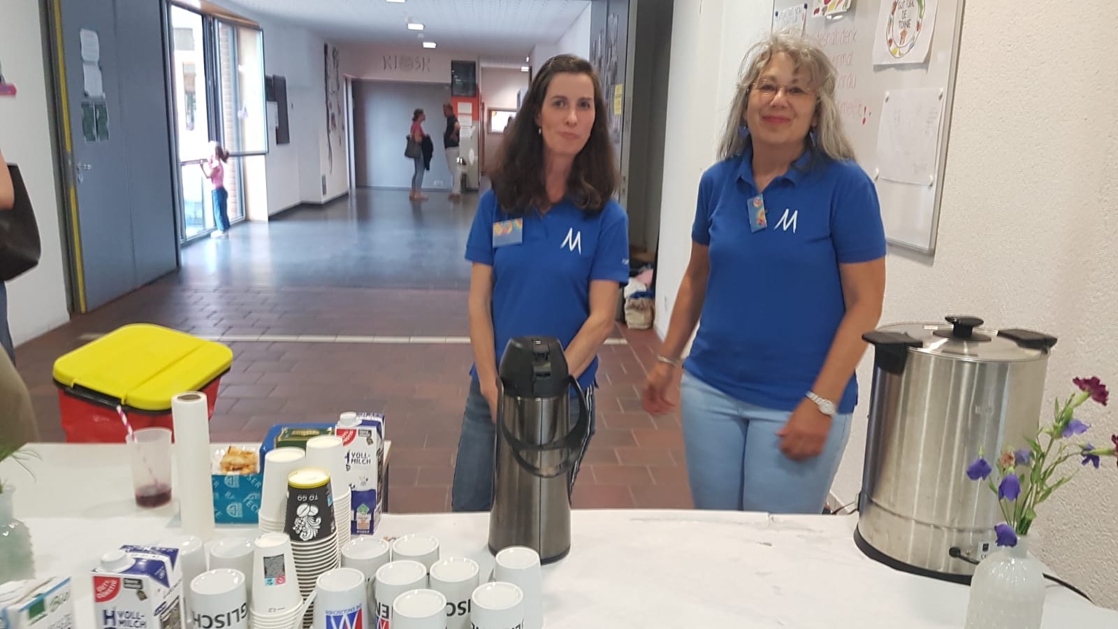 Das P-Seminar "Ehemaligentreffen" hat zusammen mit Frau von Schöning ein tolles Fest organisiert und wir waren mit von der Partie. Bei Kaffee und Waffeln kamen wir mit den Besuchern ins Gespräch. Auch ehemalige Lehrer ließen sich an ihrer alten Wirkungsstätte blicken.