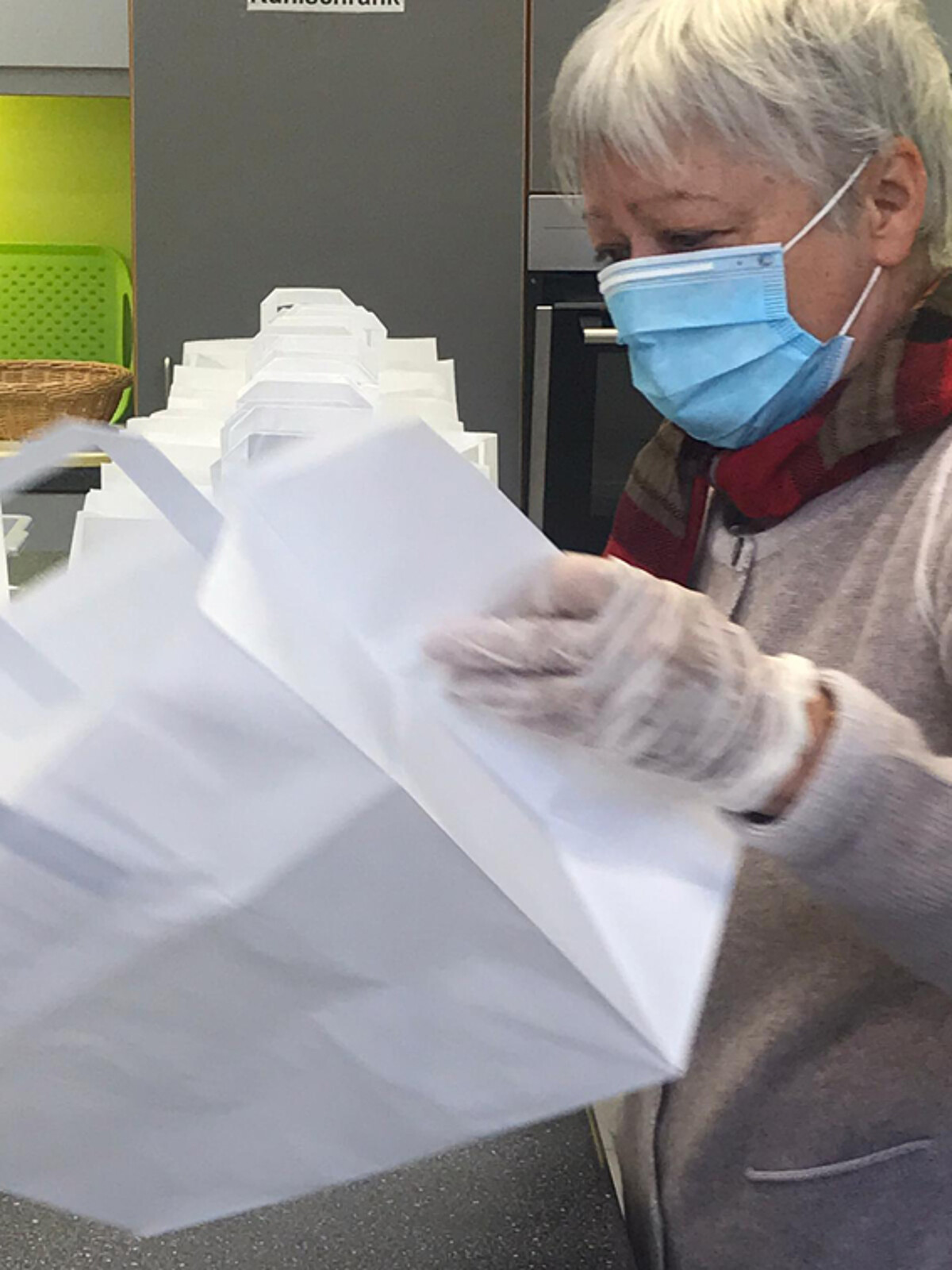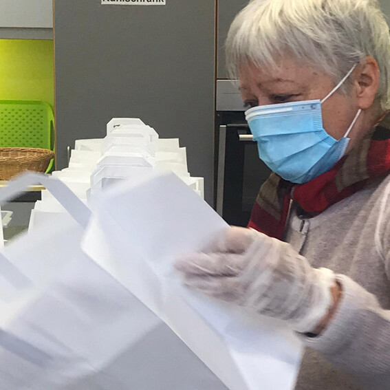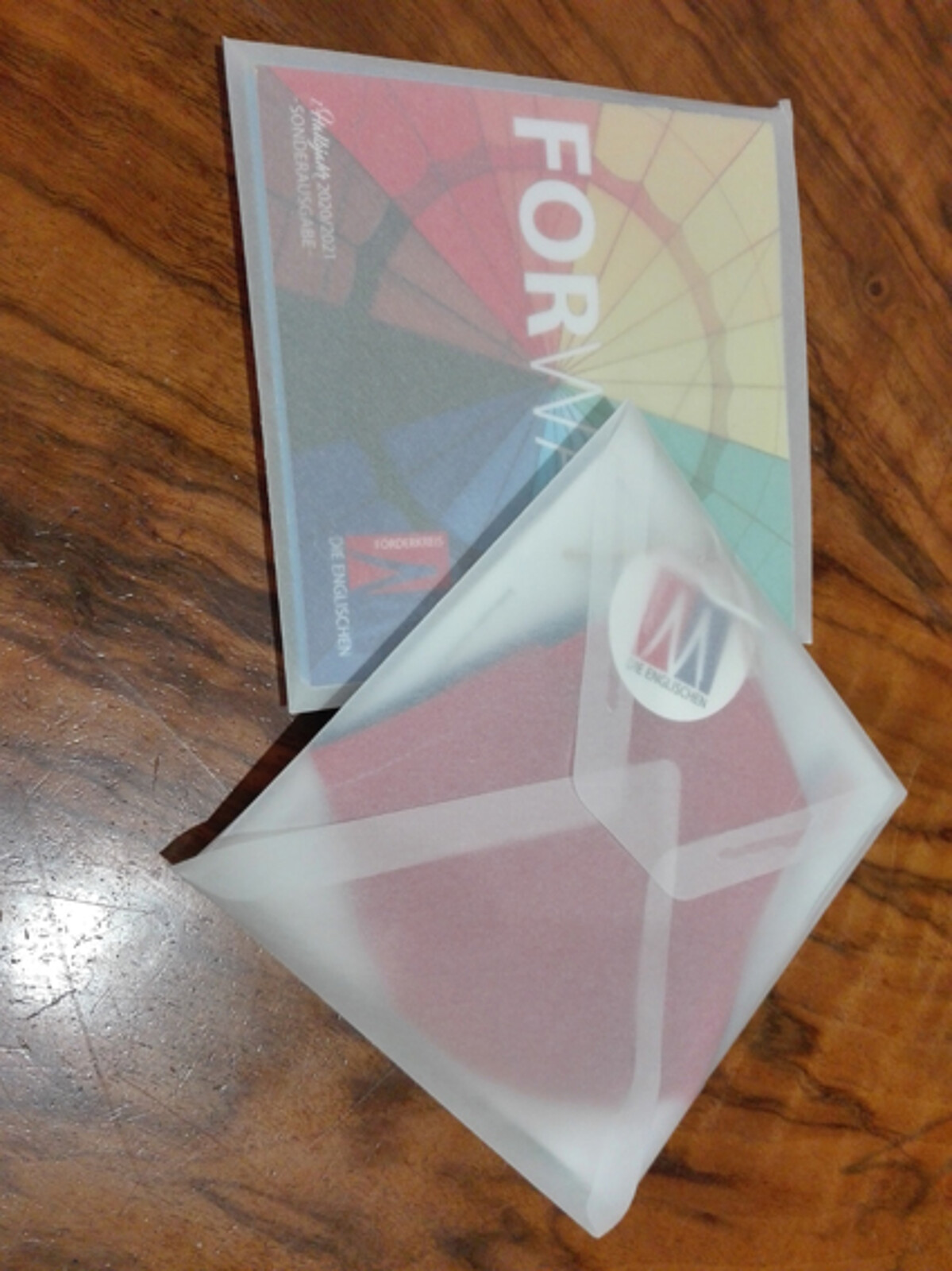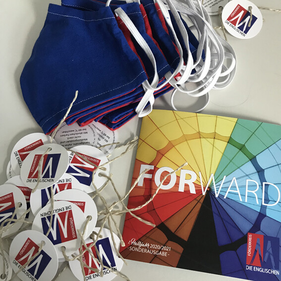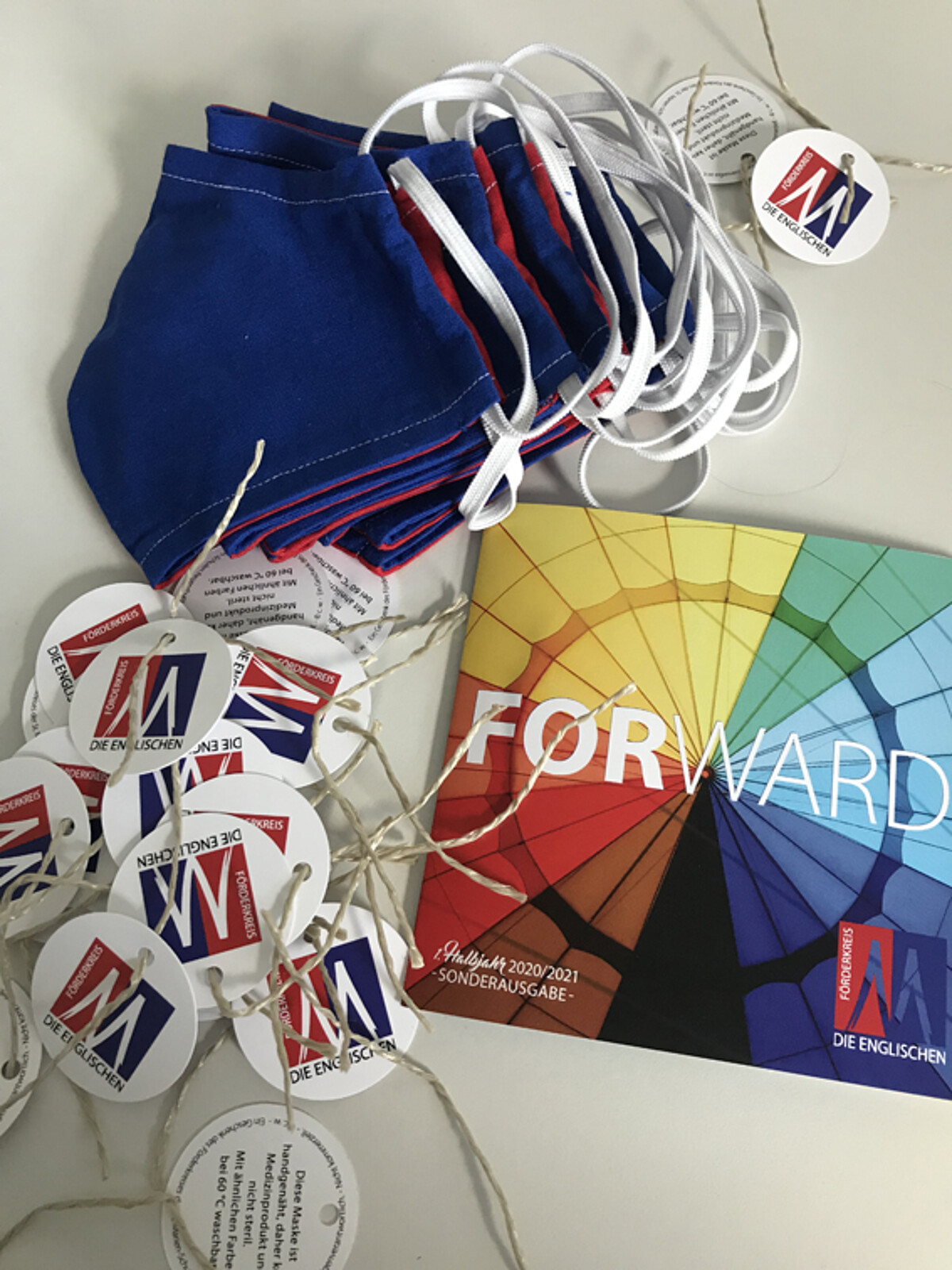 Tatkräftig unterstützt hat uns dabei eine Ehemalige - Claudia Winklbauer, die während der Sommerferien fleißig geschnitten, gebügelt und genäht hat. Dafür bedanken wir uns von ganzem Herzen! Die fertigen Masken wurden dann vom ganzen Förderkreis-Team zusammen mit unserer alten und neuen FORWARD-Ausgabe in Kuverts verpackt und jeder Schülerin persönlich am 1. und 2. Schultag ausgehändigt.