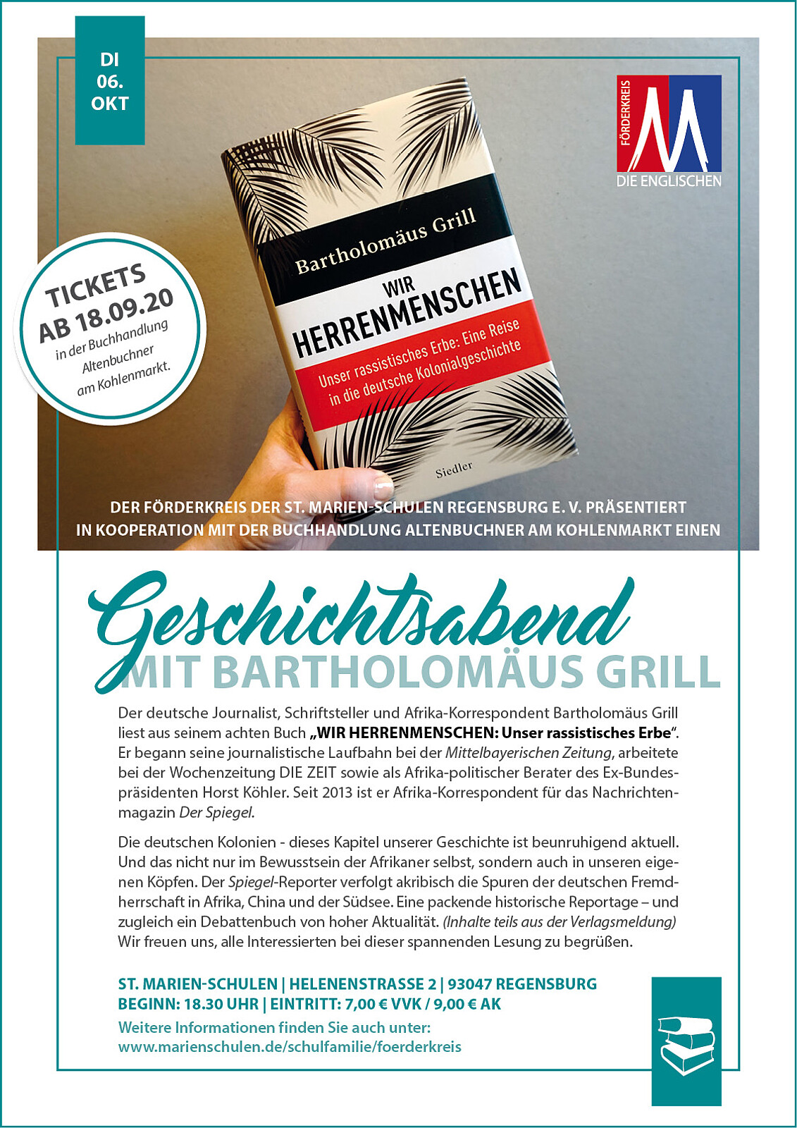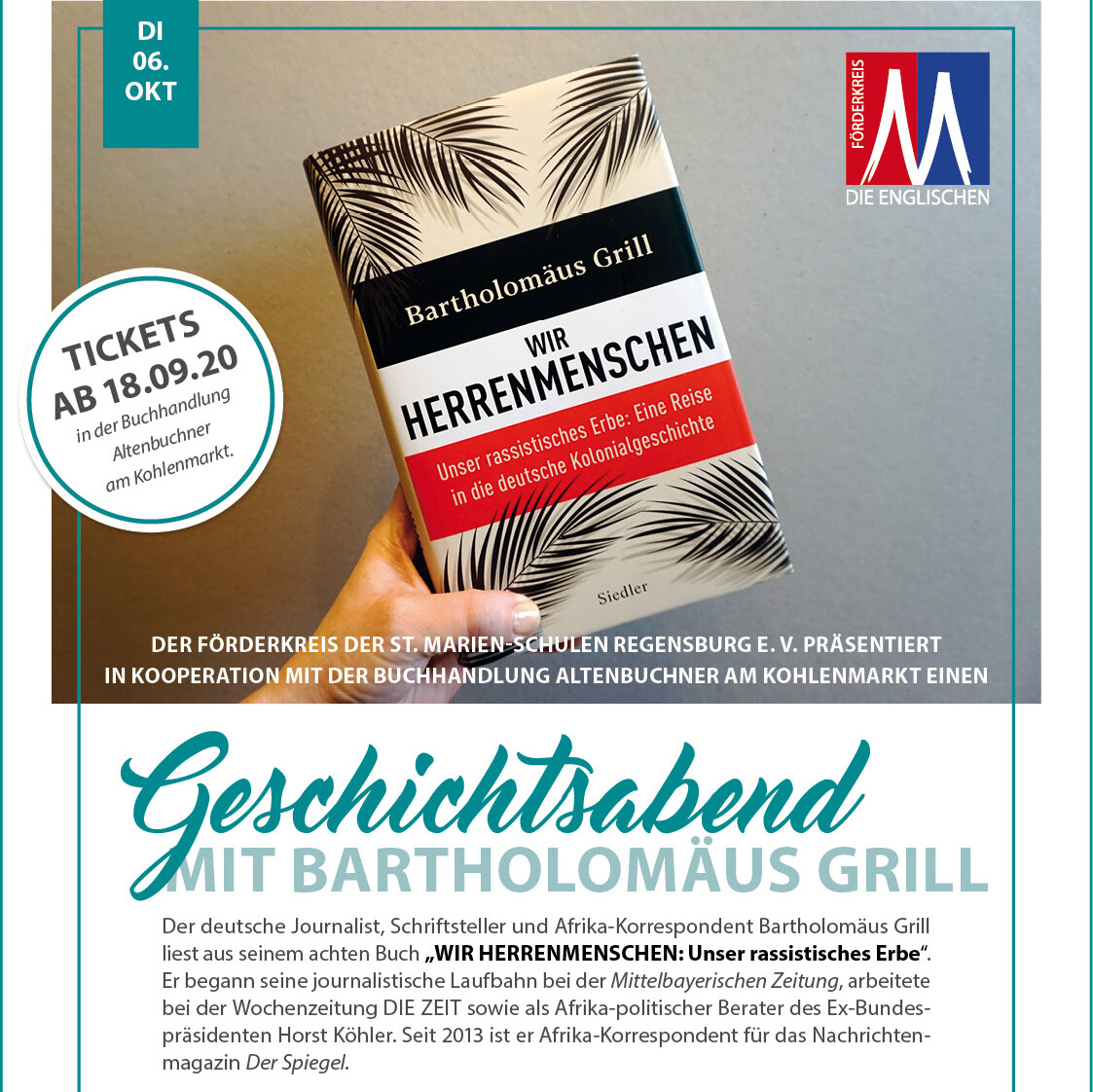 Der Förderkreis lädt herzlich zu einem Geschichtsabend am 06. Oktober mit dem Journalisten und Schriftsteller Bartholomäus Grill ein.