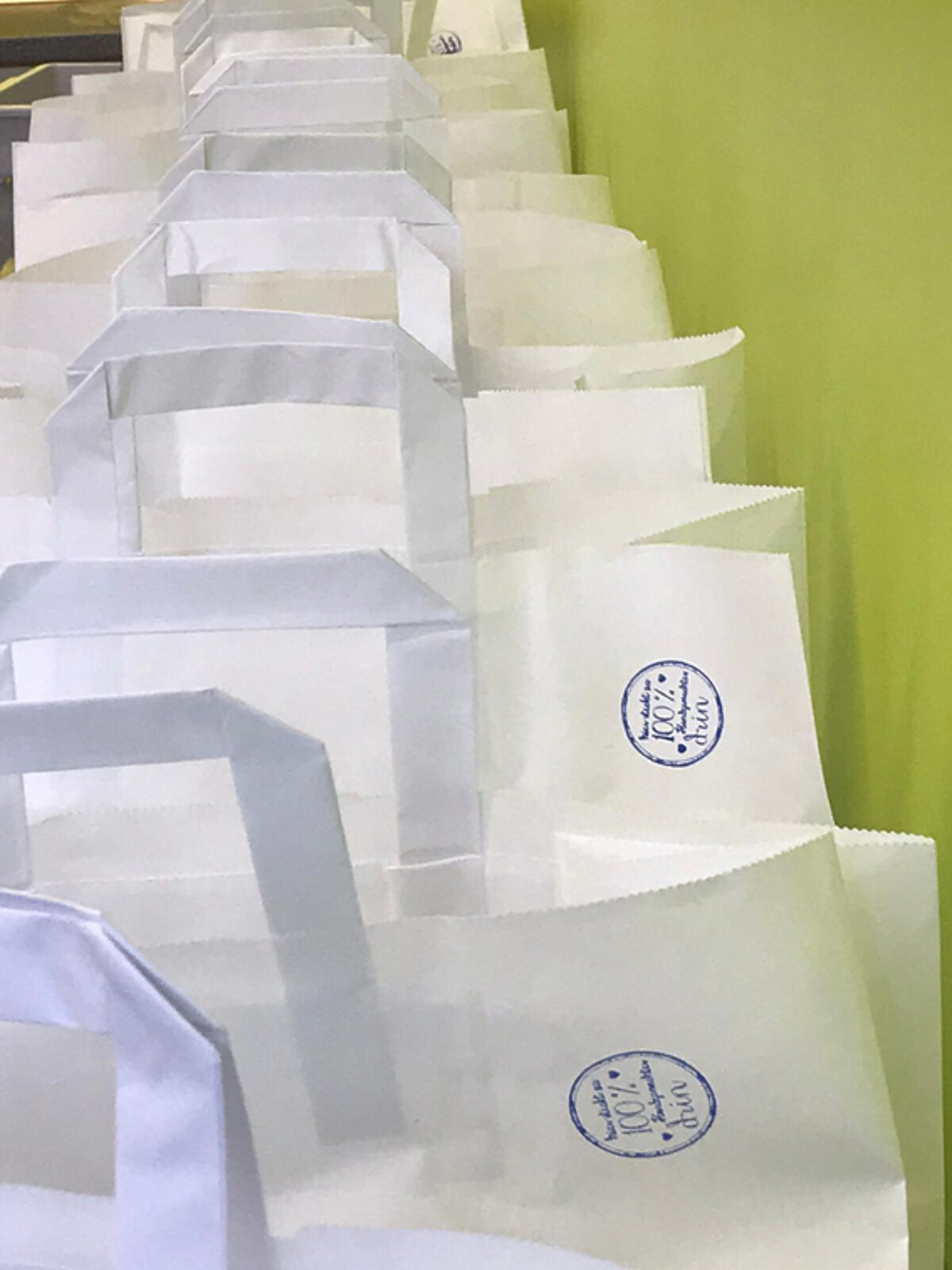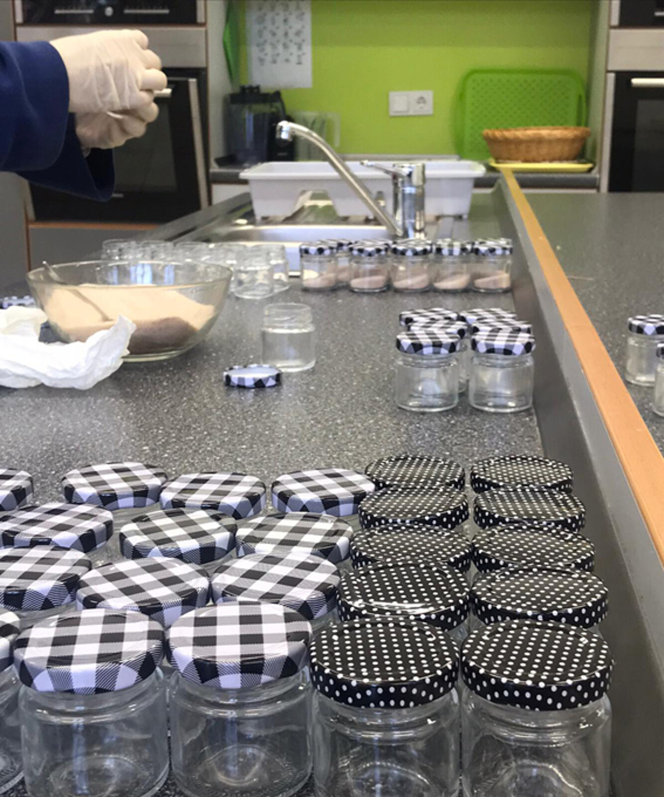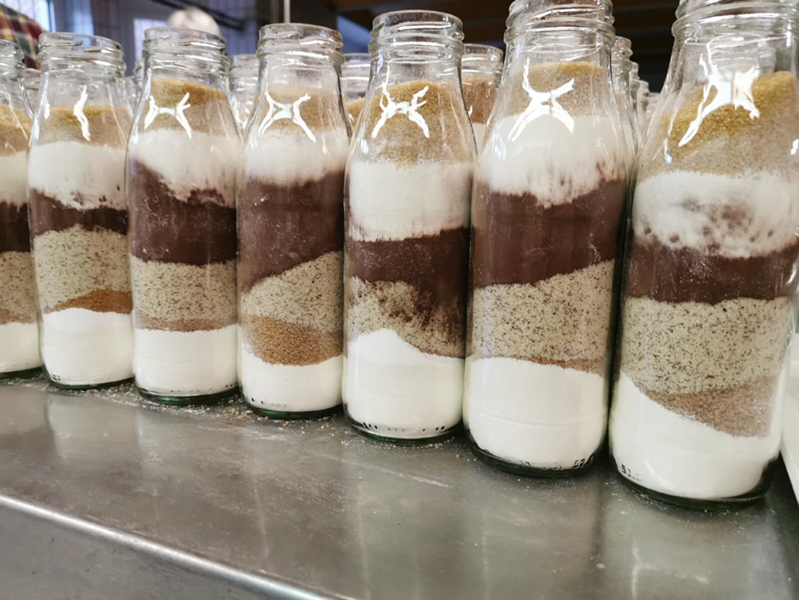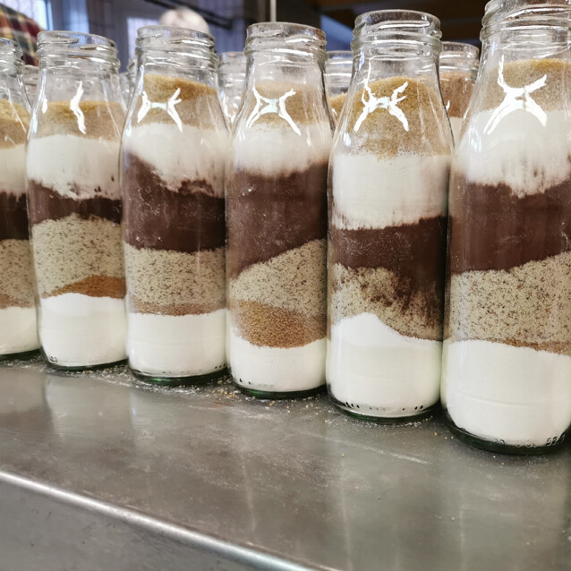 Am Donnerstag liefen die Vorbereitungen auf Hochtouren. Die fleißigen Mitglieder des Förderkreises haben in stundenlanger Kleinstarbeit alle Teile für die Weihnachts-Tüten vorbereitet. Insgesamt durften wir stolze 73 Tüten packen! Eine enorme Zahl. Plätzchenteig musste in die Gläser, Förmchen an die Rezepte und kleine grüne Zweige an die Verpackung. Danach musste die Bastelaktion einzeln verpackt in die Tüte. Zum Schluss wurden diese mit Strohanhängern verziert.