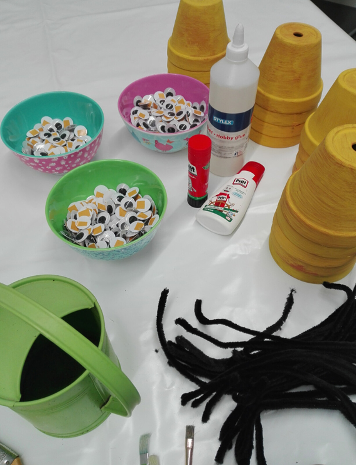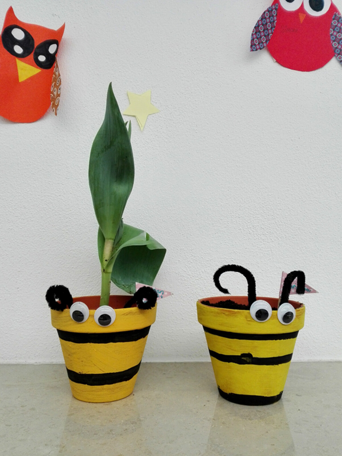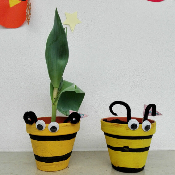 Unsere diesjährige Bastelaktion widmeten wir den Bienen. Fleißig wurden aus Wäscheklammern kleine Biene Majas gebastelt. Die Blumentöpfe waren bereits im Vorfeld in Zusammenarbeit mit Herrn Dr. Lindner von Schülerinnen der St. Marien-Schule gelb bemalt worden. Mit viel Eifer und Kreativität wurden sie dann sowohl verziert als auch bepflanzt. Das Gartenparadies Renner versorgte uns mit Blumenerde, Pflanzen, Samen sowie zahlreichen Tips – Herzlichen Dank dafür.