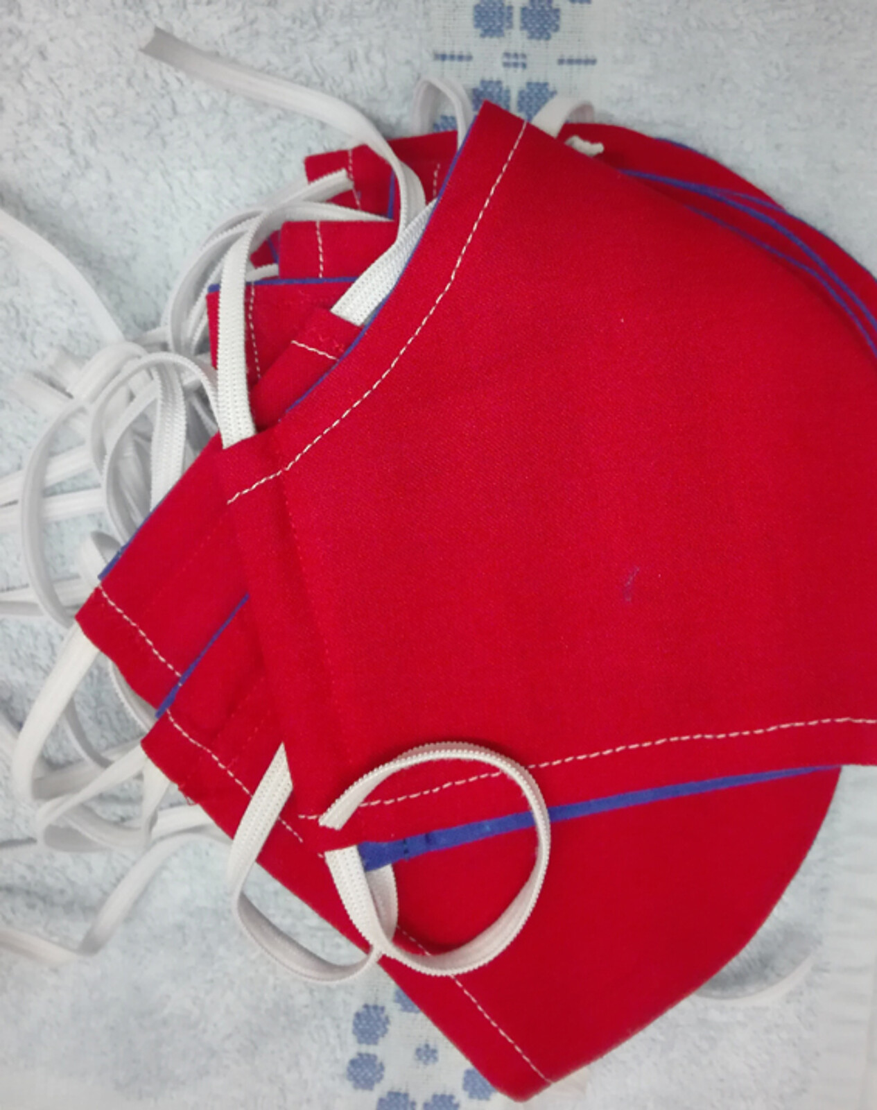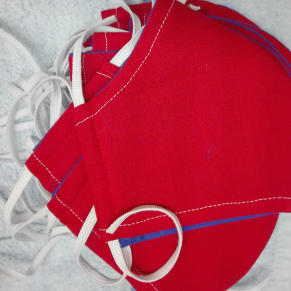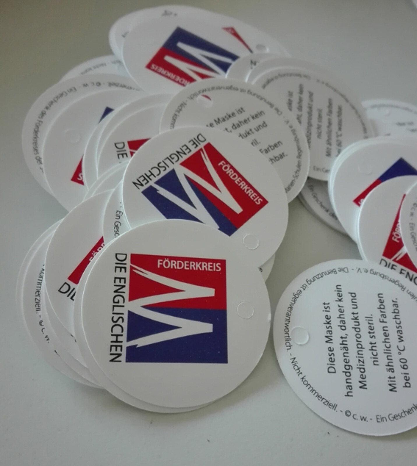 Also haben wir uns etwas anderes einfallen lassen, um unsere neuen "Englischen" willkommen zu heißen: 160 handgenähte Masken in den Schulfarben Rot und Blau.