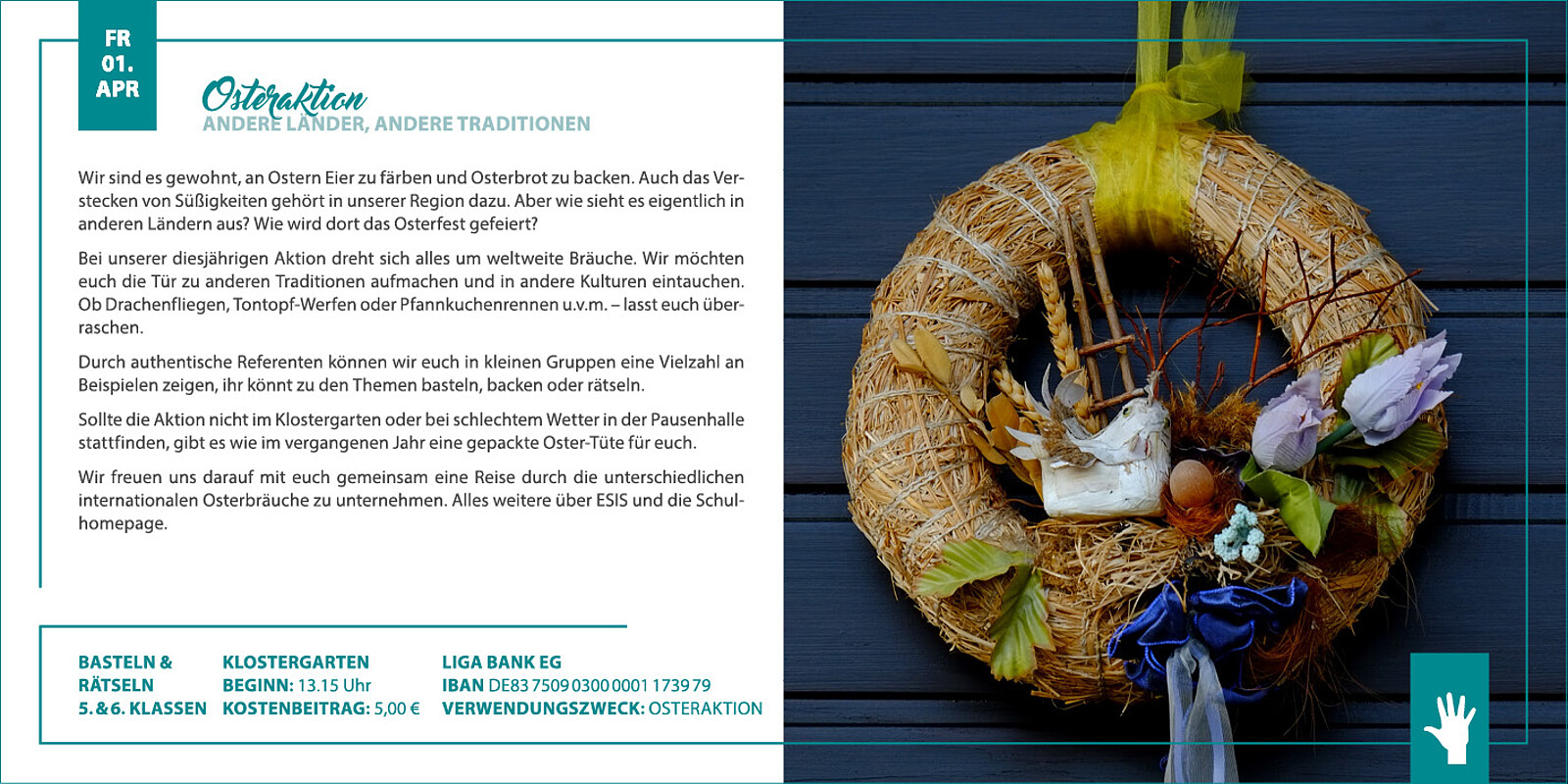 Zum Download die Broschüre mit den Osterbräuchen, die wir von Eltern/Freunden/Verwandten unserer Schülerinnen bekommen haben.