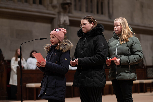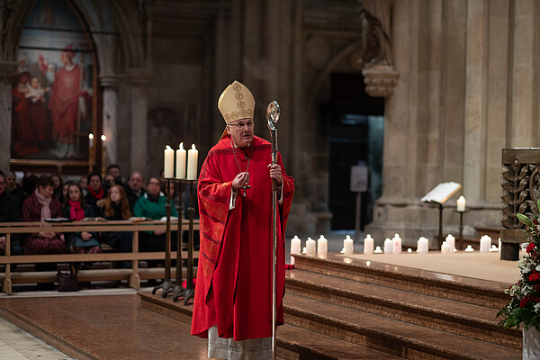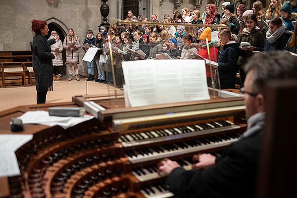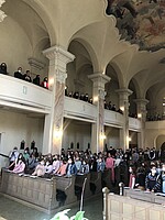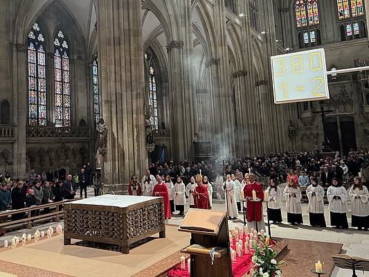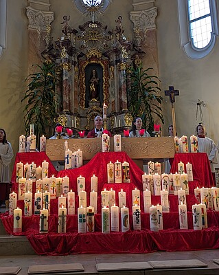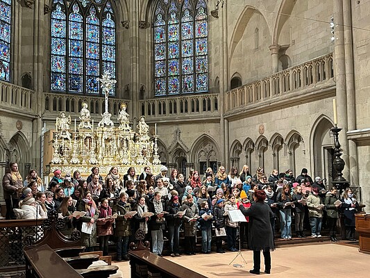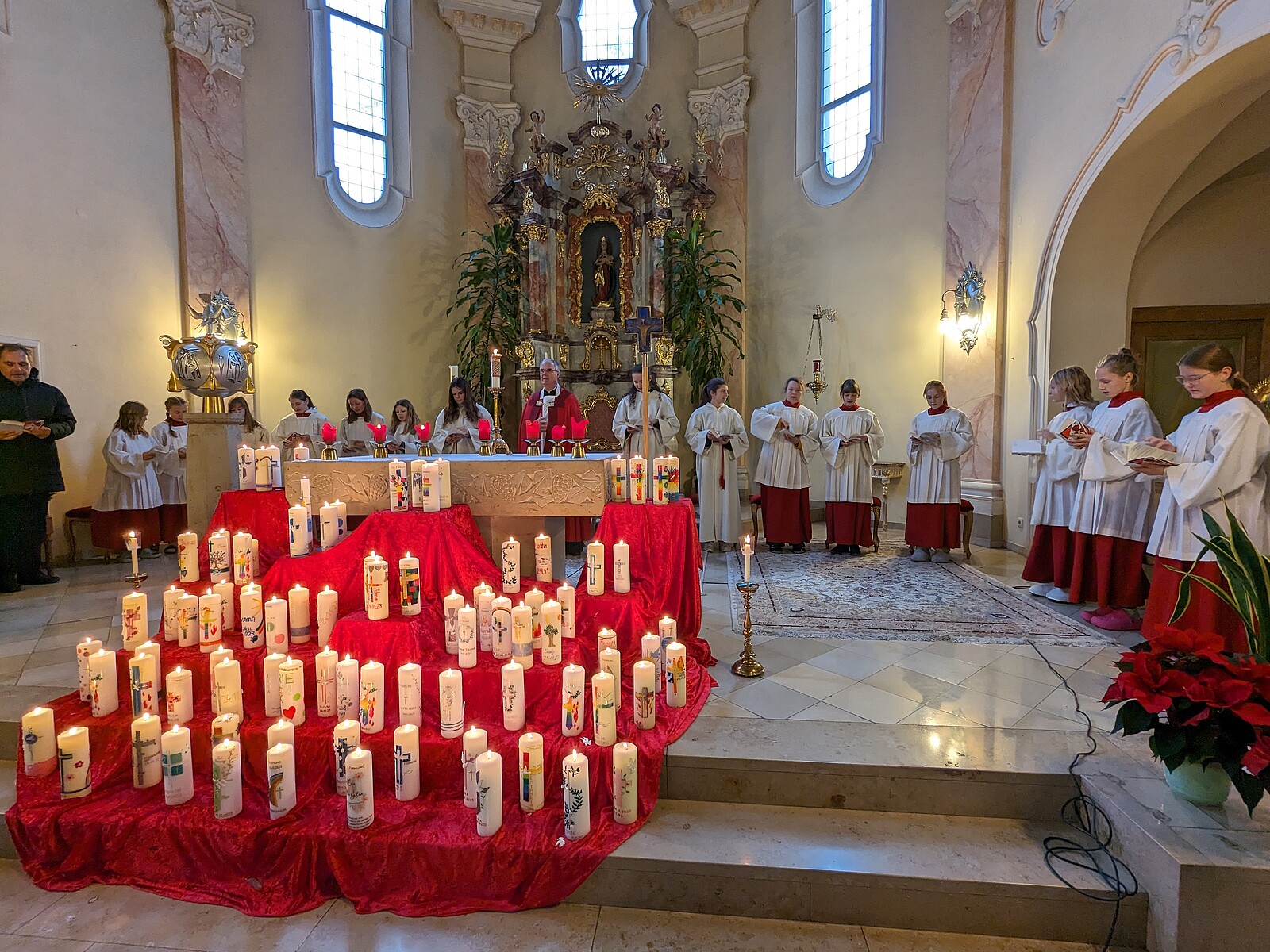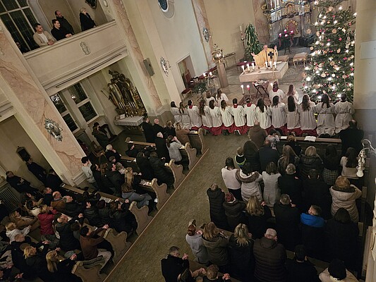 „Das gibt es so nirgendwo...!“ Dieses Zitat stammt von Dr. Peter Nothaft, dem Leiter des Katholischen Schulwerks in Bayern, gegenüber Domvikar Albert im Blick auf die Christmette der Schulgemeinschaft am Heiligen Abend. Und in der Tat waren heuer wieder ca. 450 Gläubige – Ehemalige und gegenwärtige Schülerinnen mit ihren Familien! – der Einladung in die Schul- und Institutskirche gefolgt. „Um Nachsicht bitten wir, dass wir circa 70 Absagen erteilen mussten...“ so der Schulseelsorger, „aber mehr lassen die räumlichen Gegebenheiten sinnvoll einfach nicht zu!“
