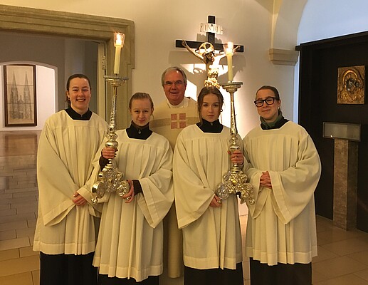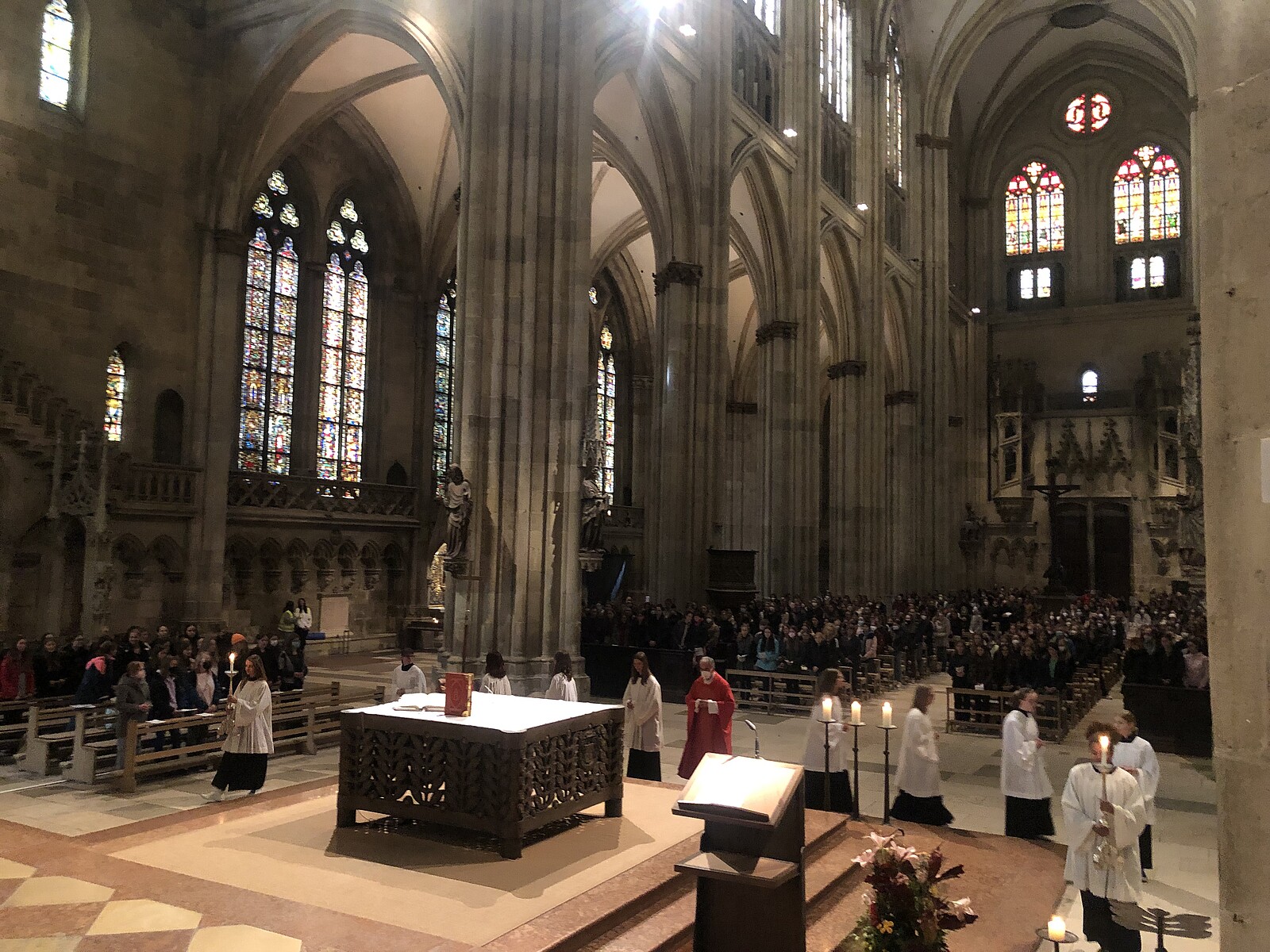 Zusätzlich ist eine Gruppe unserer Schülerinnen aus Q 12 seit November auch noch an Sonntagen im Hohen Dom bei Gottesdiensten ihres Schulseelsorgers im Altardienst engagiert, was den staunenden Regensburgern durchaus Eindruck macht!!
