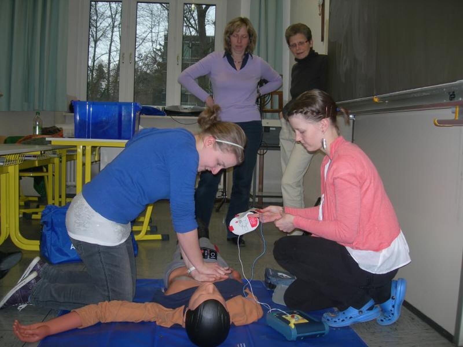 Seit geraumer Zeit existiert an unseren Schulen ein Schulsanitätsdienst, der im Notfall sofort erreichbar ist und Erste Hilfe leisten kann. Lehrkräfte und Schülerinnen sind dafür ausgebildet und über einen internen Funk jederzeit erreichbar.