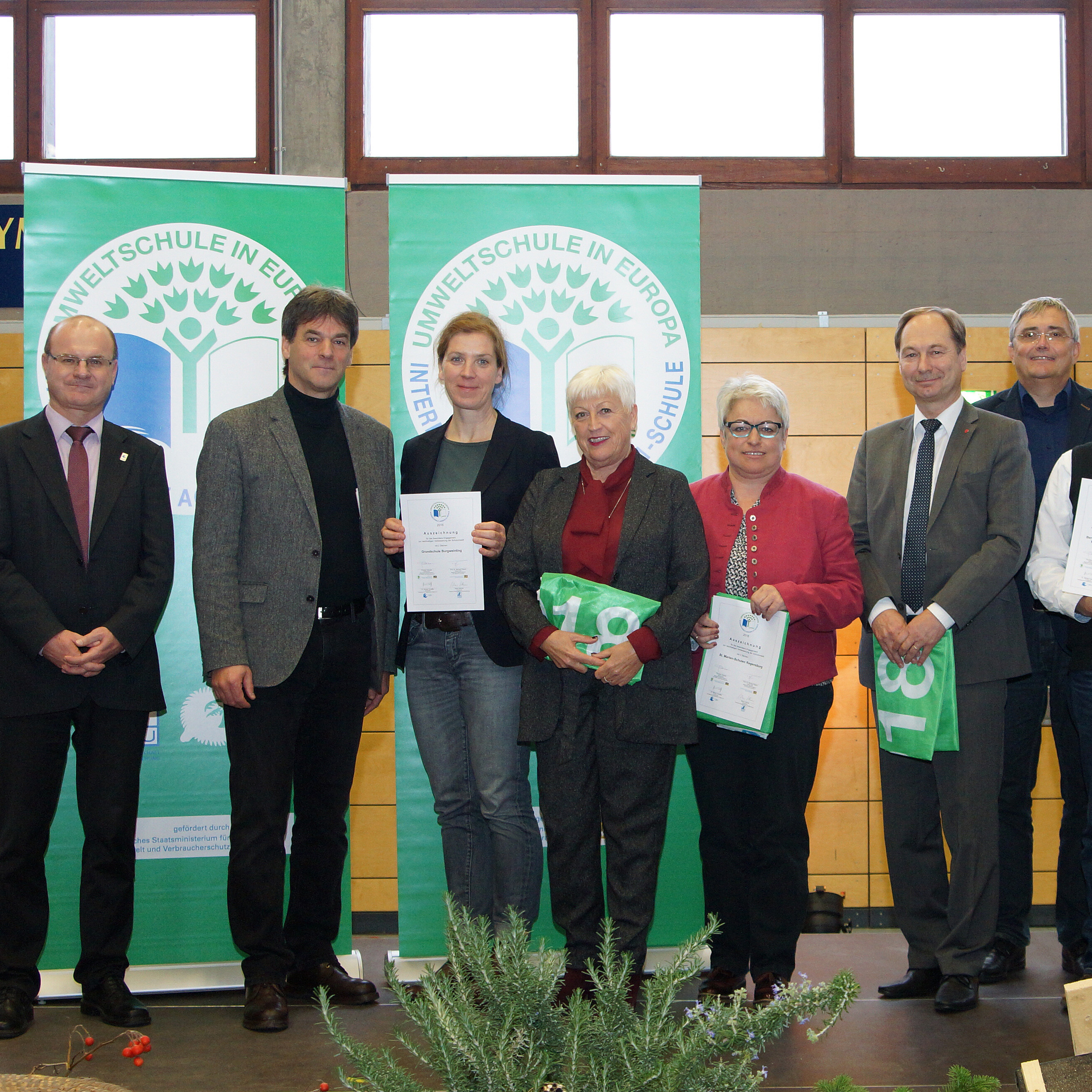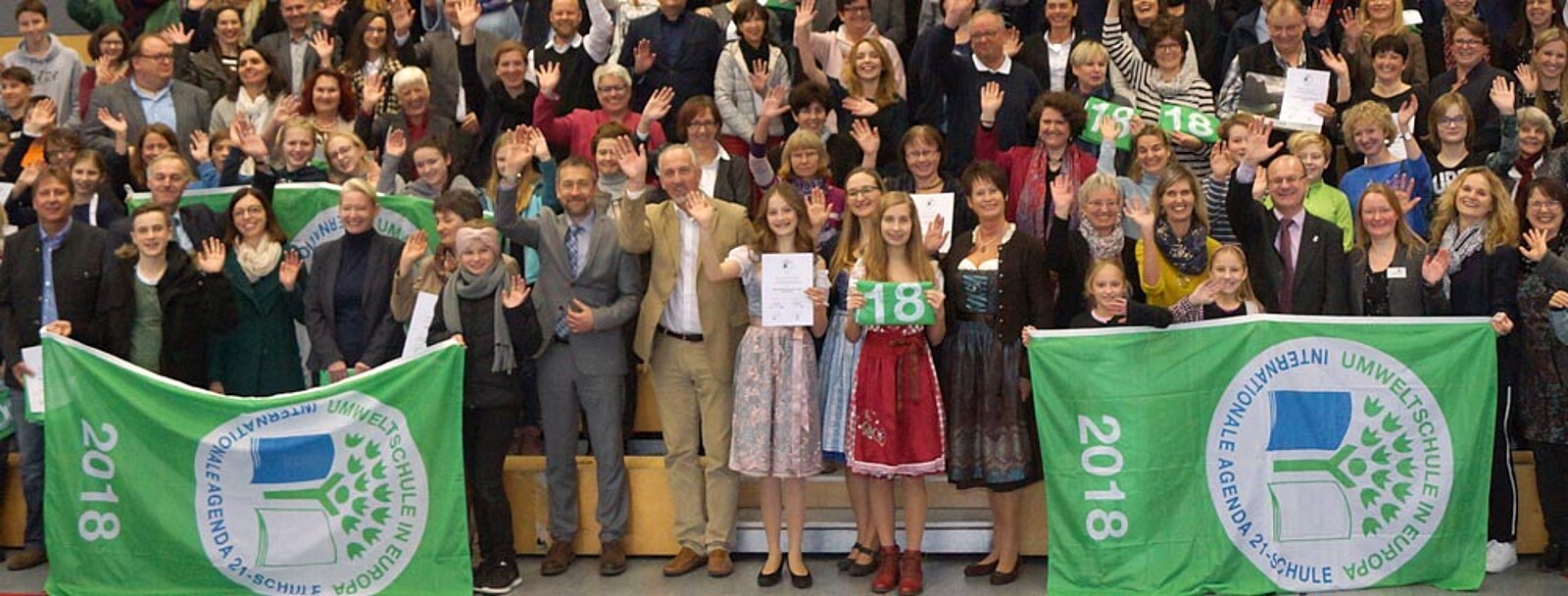In einer Auszeichnungsveranstaltung überreichten Herr Barthmann vom Bayerischen Staatsministerium für Umwelt und Verbraucherschutz sowie Dr. Schäffer, Vorsitzender des LBV, den erfolgreichen bayerischen Schulen die Auszeichnung „Umweltschule in Europa/Internationale Agenda 21-Schule für das Schuljahr 2017/2018“ im Johannes-Turmair-Gymnasium Straubing. Die Projekte sind in mehrfacher Hinsicht wichtig, da sie das persönliche Engagement und die Eigeninitiative junger Menschen fördern sowie einen Beitrag zu mehr Umweltschutz im Schulalltag leisten. Zudem tragen Umweltschulen durch ihr Engagement dazu bei, einen nachhaltigen, generationengerechten Lebensstil zu entwickeln.