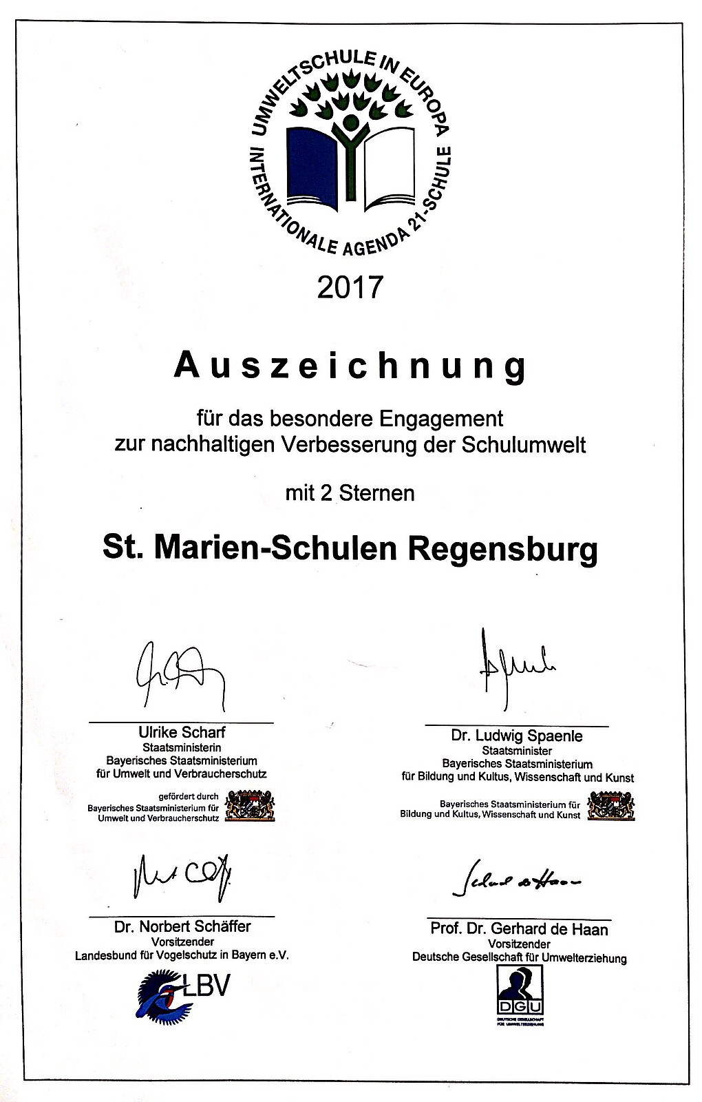Titel verteidigt: St. Marien-Schulen sind auch 2017 „Umweltschule in Europa“!