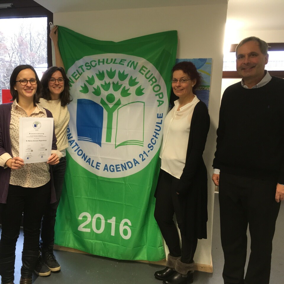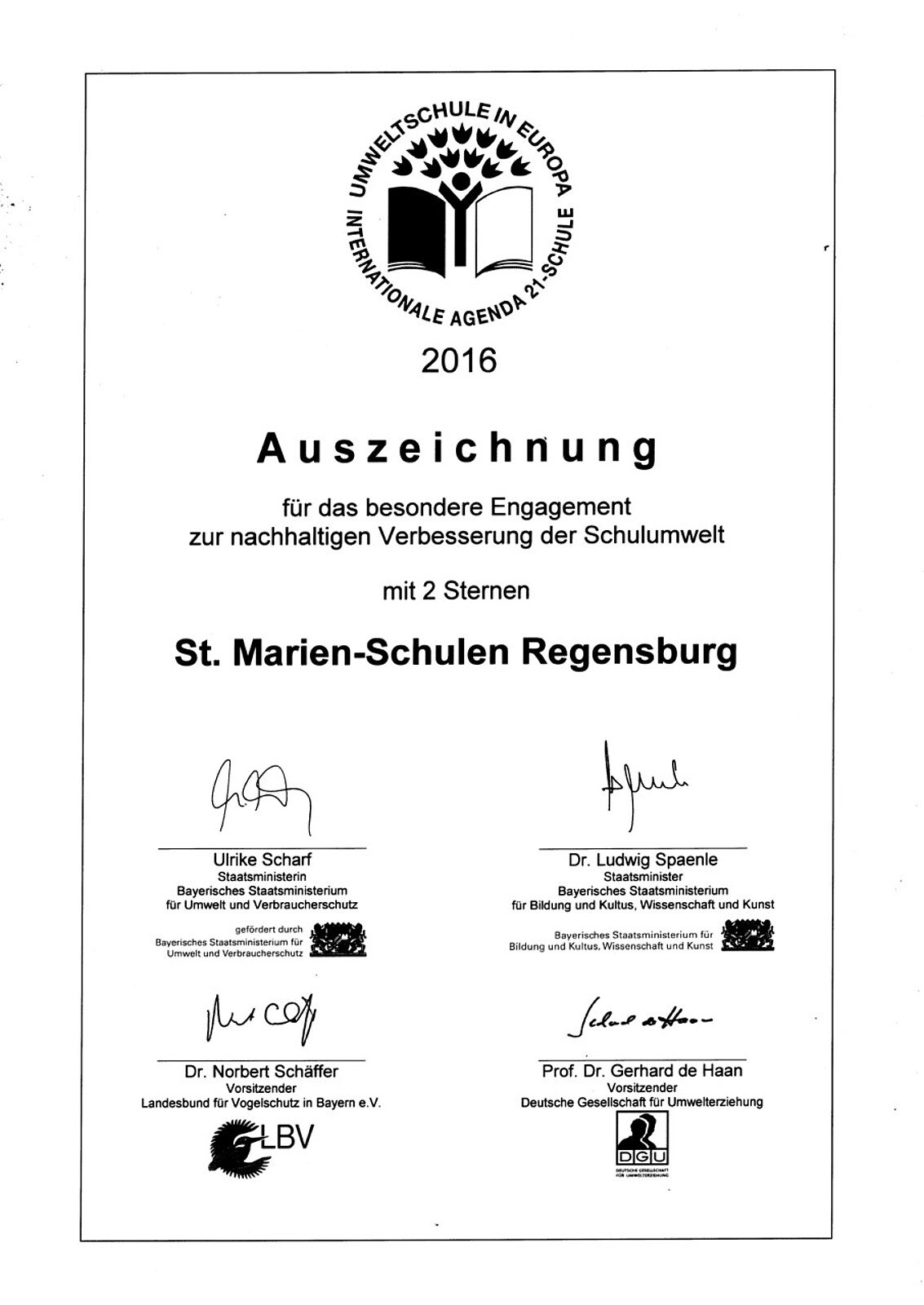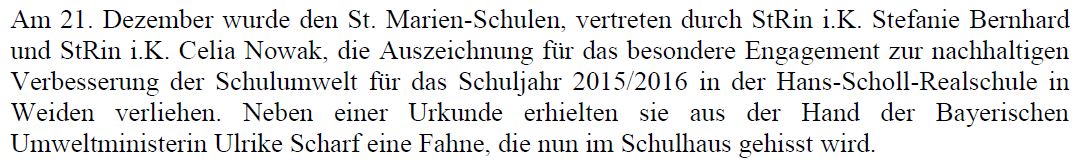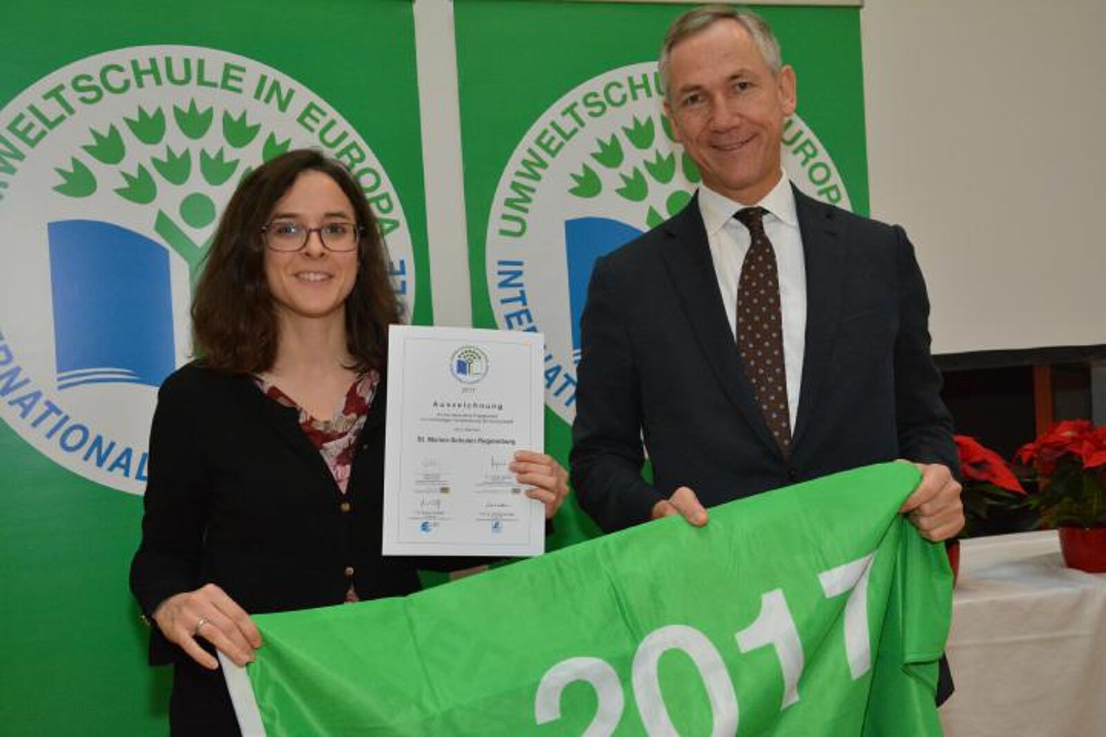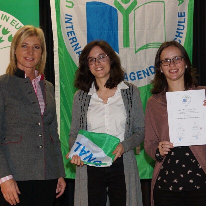 Stellvertretend für die Schulfamilie der St. Marien-Schulen nahm StRin (RS) Daniela Voggenreiter die Auszeichnung (Urkunde und Fahne) in Straubing entgegen und freute sich über die Anerkennung, die damit zum Ausdruck gebracht wurde.