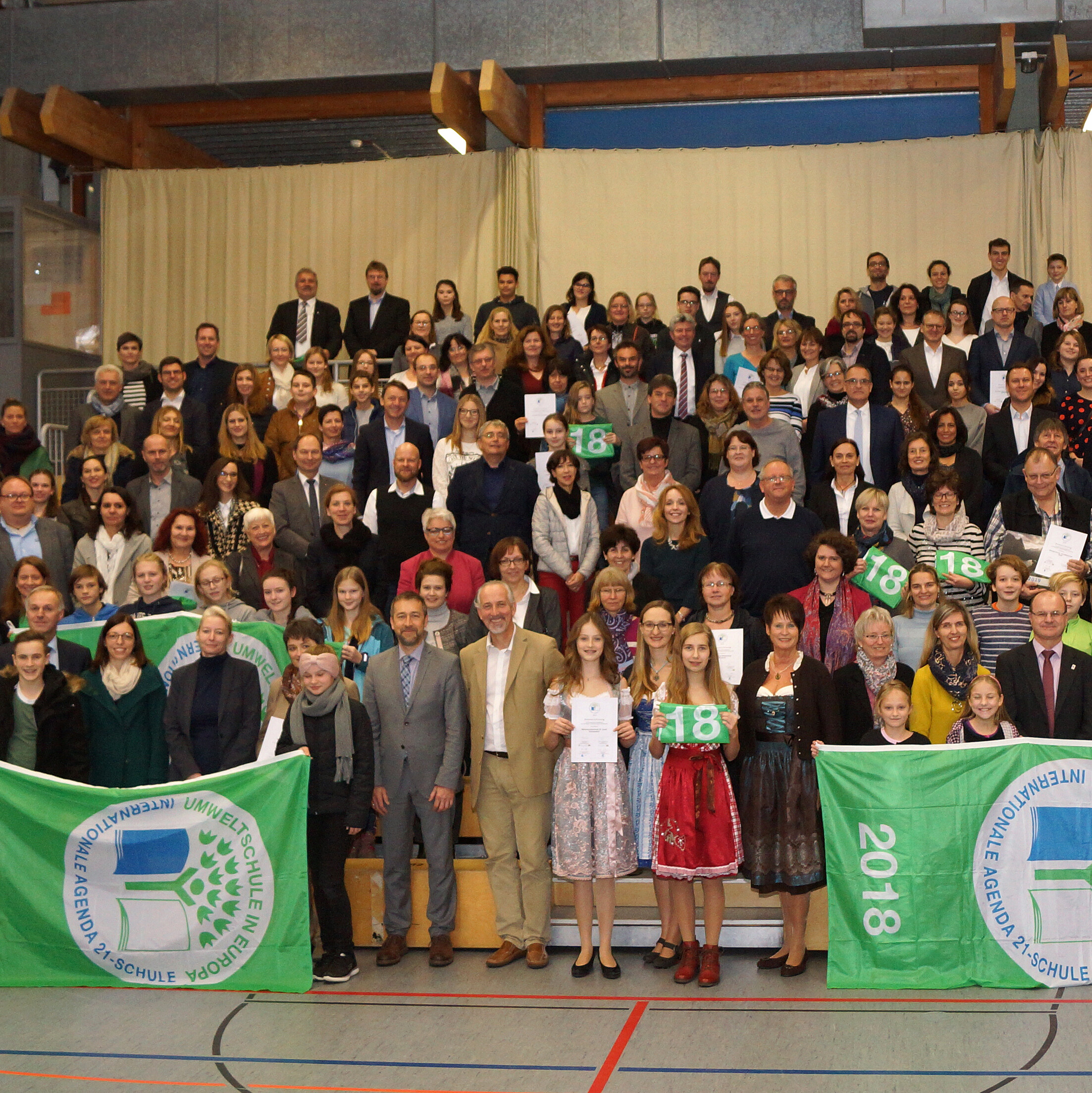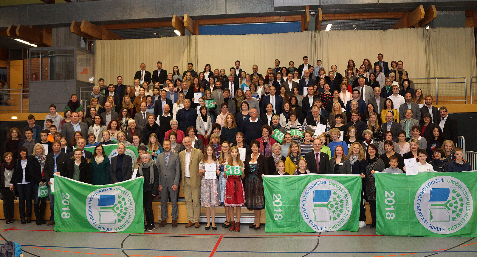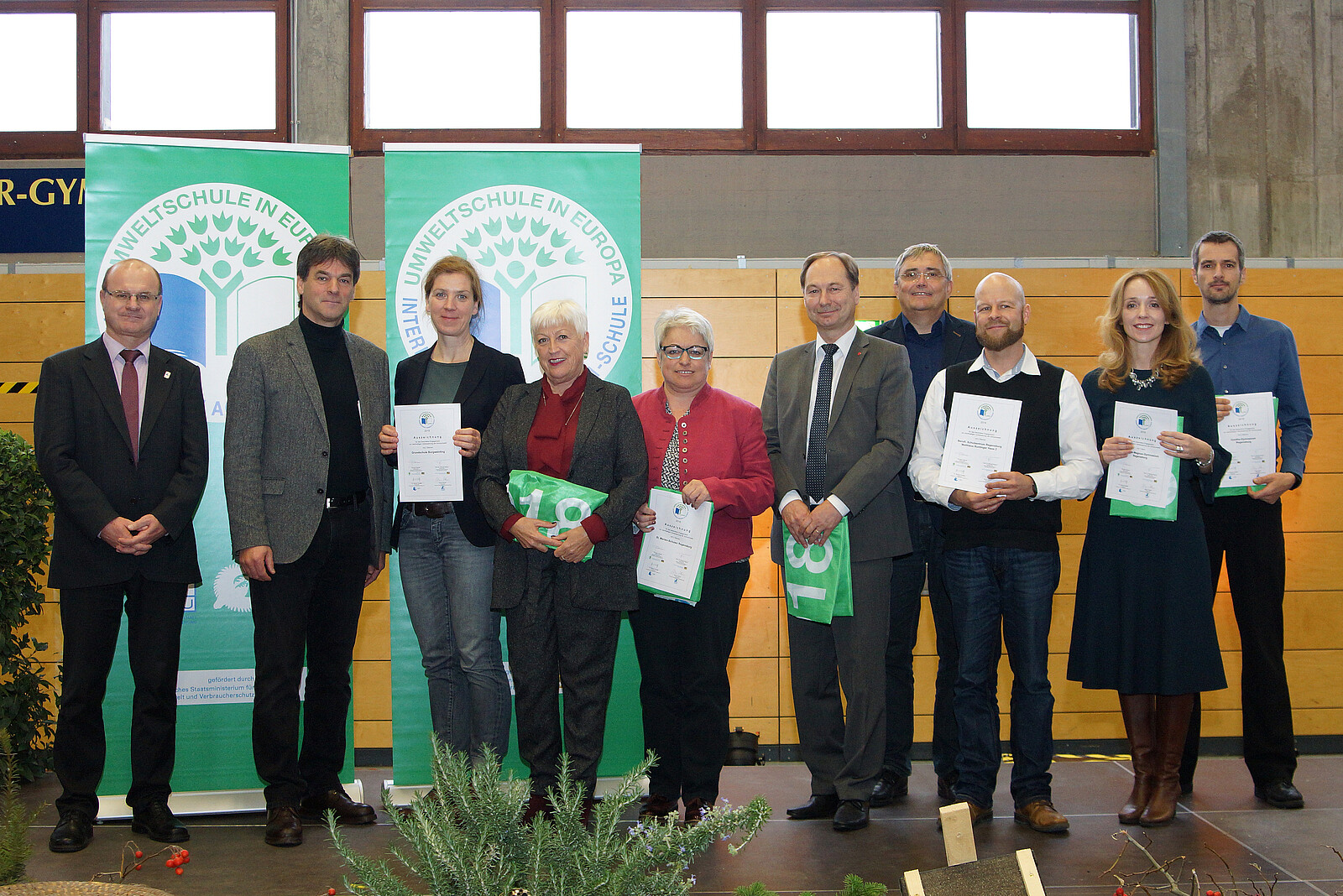 Pfreimd, 6.12.17: In einer Auszeichnungsveranstaltung überreichte Amtschef Dr. Christian Barth den erfolgreichen bayerischen Schulen die Auszeichnung „Umweltschule in Europa / Internationale Agenda 21-Schule für das Schuljahr 2016/2017“ in der Landgraf-Ulrich-Schule Pfreimd. Für Barth sind die durchgeführten Projekte in mehrfacher Hinsicht wichtig, da sie das persönliche Engagement und die Eigeninitiative junger Menschen fördern sowie einen Beitrag zu mehr Umweltschutz im Schulalltag leisten. Zudem tragen Umweltschulen durch ihr Engagement dazu bei, einen nachhaltigen, generationengerechten Lebensstil zu entwickeln.